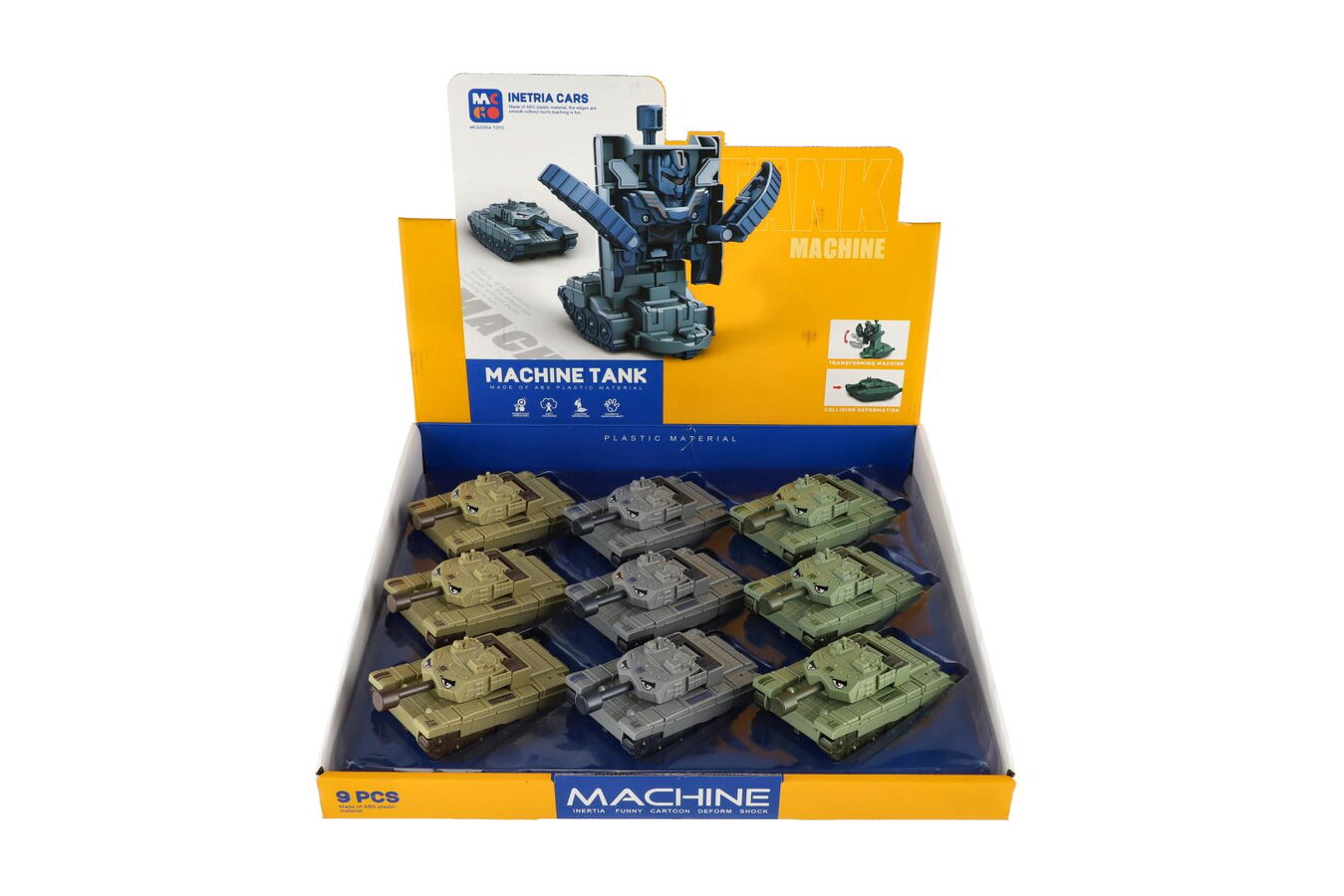 Transformer tank/robot plast 14cm na setrvačník 3 barvy 9ks v boxu