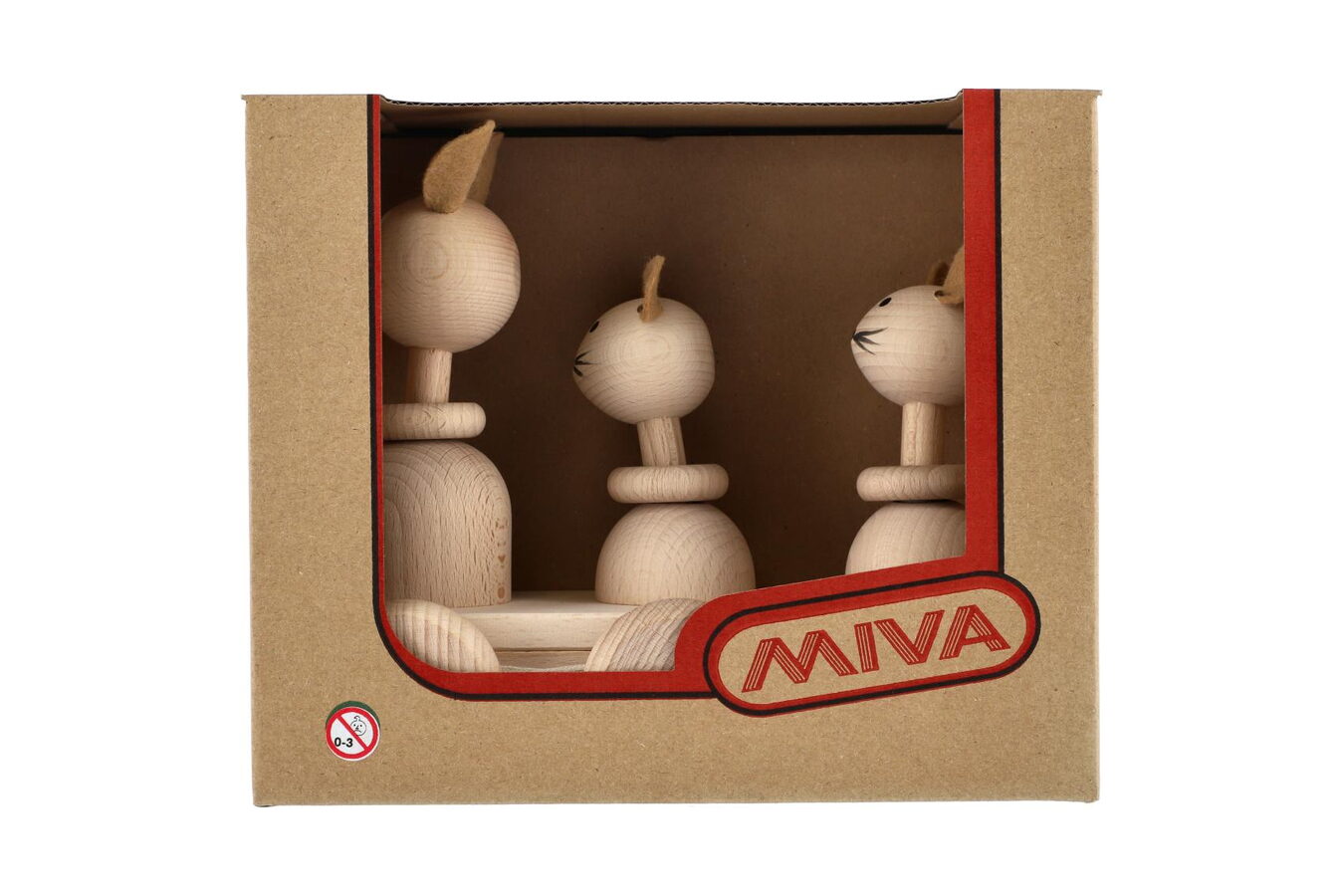 Tři myšky tahací přírodní dřevo 22cm v krabici 22x18x12cm