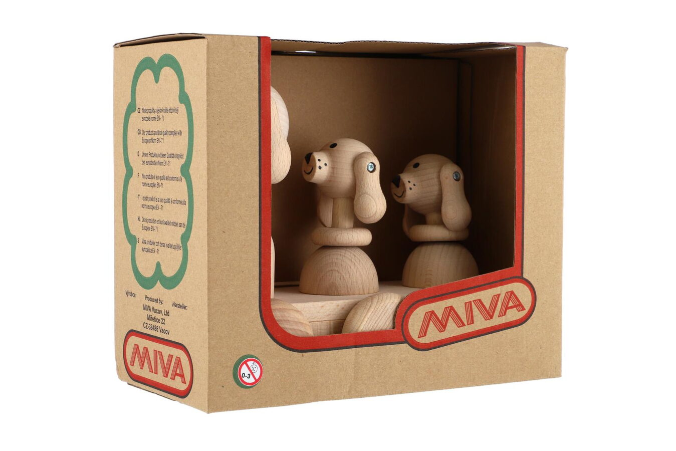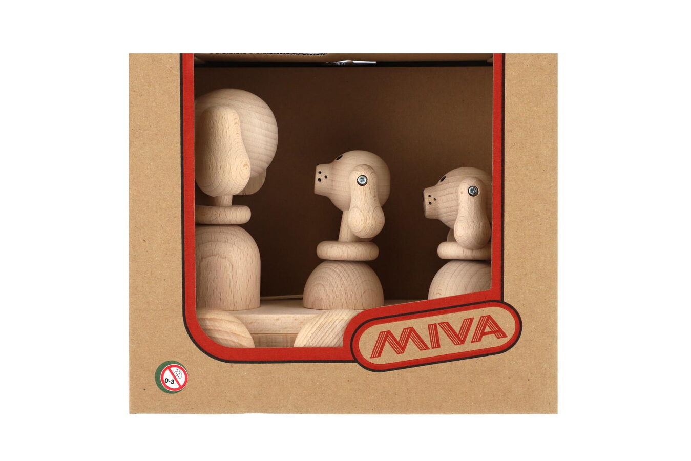 Tři psi tahací přírodní dřevo 22cm v krabici 22x18x12cm
