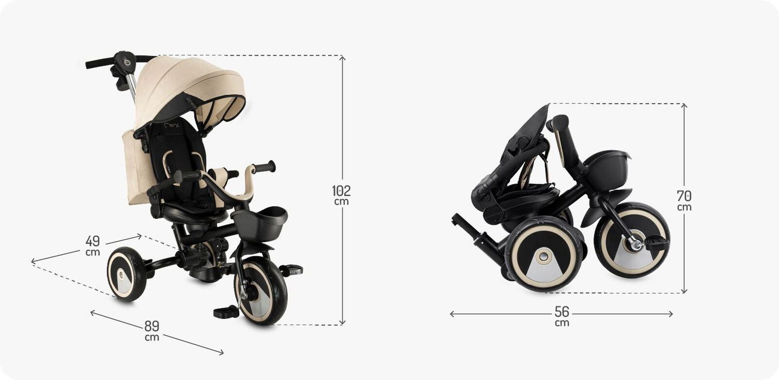 MoMi IVI nabízí hned 3 funkce! Nejmenší děti mohou sedět otočené směrem k rodiči, zatímco starší si užijí jízdu na šlapací tříkolce. MoMi IVI má nastavitelnou sedačku a opěrku zad, sklopnou opěrku nohou a volnoběh. Součástí balení jsou také praktické doplňky – taška a držák na hrnek.