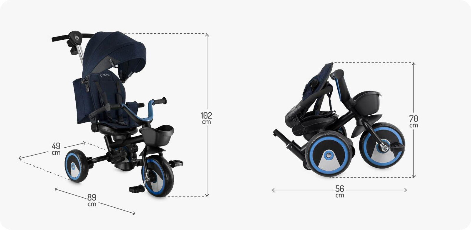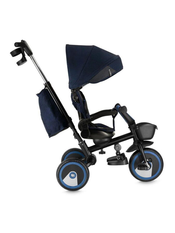 MoMi IVI nabízí hned 3 funkce! Nejmenší děti mohou sedět otočené směrem k rodiči, zatímco starší si užijí jízdu na šlapací tříkolce. MoMi IVI má nastavitelnou sedačku a opěrku zad, sklopnou opěrku nohou a volnoběh. Součástí balení jsou také praktické doplňky – taška a držák na hrnek.