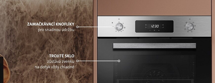 O bezpečnost při pečení se nemusíte obávat. Dvířka trouby ETA v sobě ukrývají celkem 3 skla a popálení tak rozhodně nehrozí. O tom, co se v troubě odehrává, ale budete mít vždy dokonalý přehled díky osvětlení uvnitř spotřebiče. V balení naleznete i grilovací rošt a 2 praktické plechy s hloubkou 20 a 40 mm.