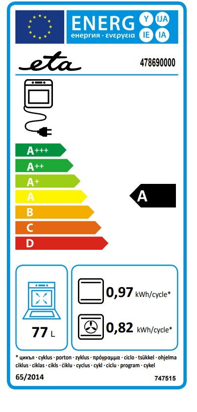 Vestavná 77l trouba ETA v úsporné energetické třídě A