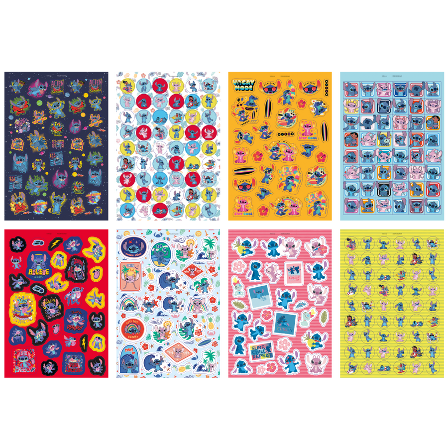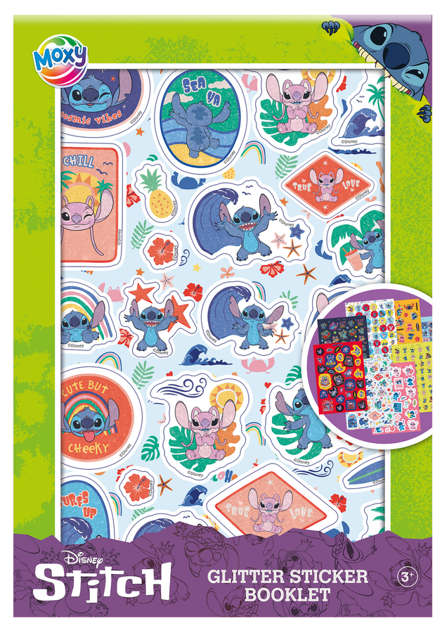 Vstup do světa fantazie s třpytivými samolepkami inspirovanými Stitchem! Balení obsahuje 8 archů plných barevných a zářivých samolepek s oblíbenými postavičkami a kouzelnými motivy. Ideální pro zdobení sešitů, dopisů nebo tvoření vlastních příběhů.