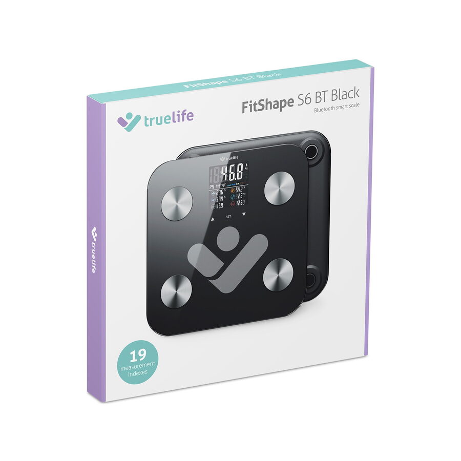 Inteligentní váha TrueLife FitShape S6 BT Black umí o těle uživatele prozradit daleko víc než jen hmotnost. O tom, jak na tom tělo je, vypovídají totiž spíše indexy jako BMI, BFR nebo BMR. Jedná se o výpočty poměrů tukové tkáně či množství energie potřebné pro správné fungování těla. Takovýchto měřitelných indexů těla dokáže váha zjistit 19, a to především svalovou frekvenci, poměr vody v těle, hodnotu bílkovin, hmotnost kostí a spoustu dalších.
