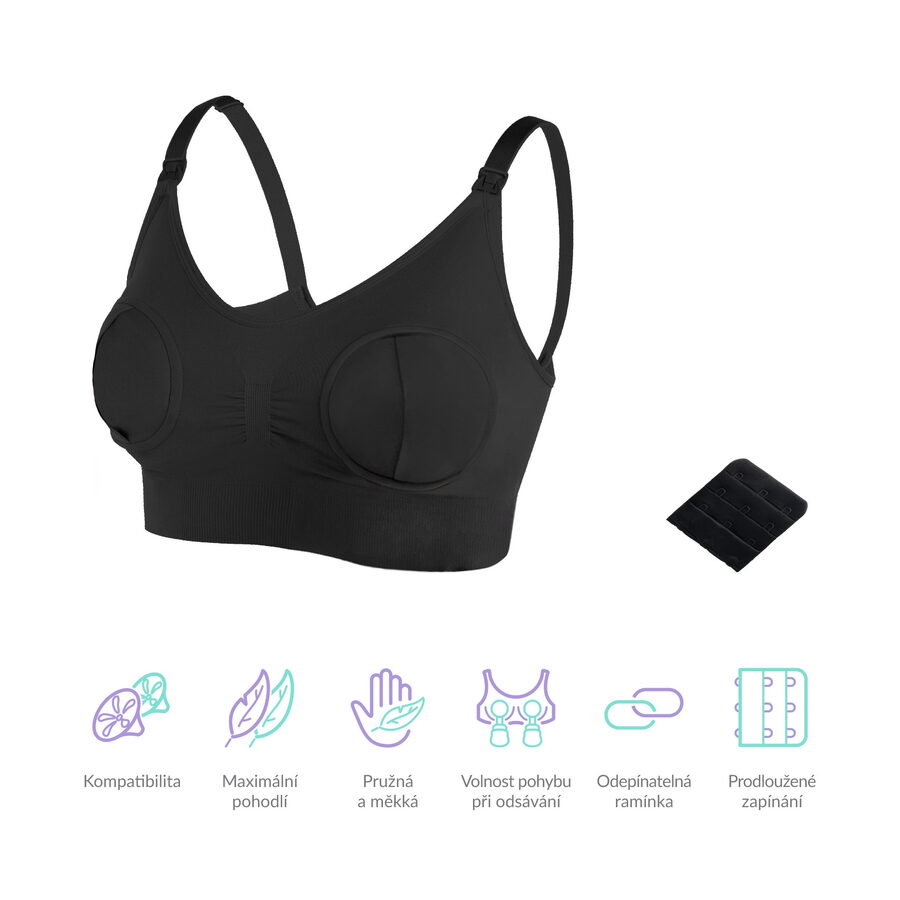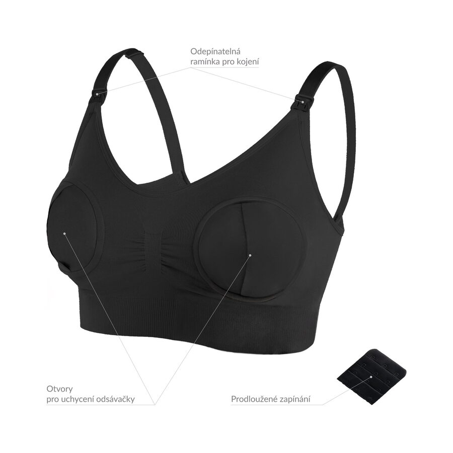 K podprsence snadno připevníte odsávačky značky TrueLife, ale i ostatní odsávačky dostupné na trhu.