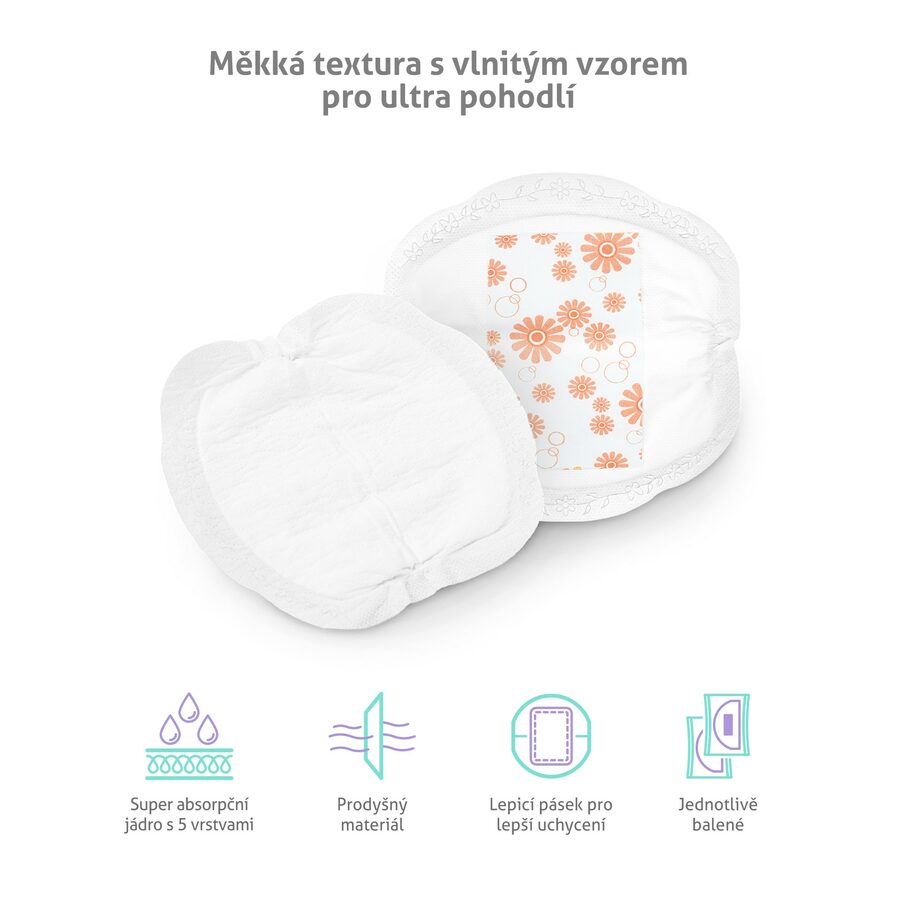 Prsní vložky dokonale chrání svou nositelku, zároveň jsou také velmi diskrétní. Jemný bavlněný povrch s netkaným vlnitým vzorem a tloušťkou pouhou 1 mm činí vložky pro okolí neviditelné. Nic to však neubírá na jejich účinnosti, kdy vstřebají až 120 ml mléka.