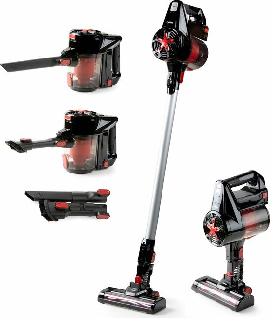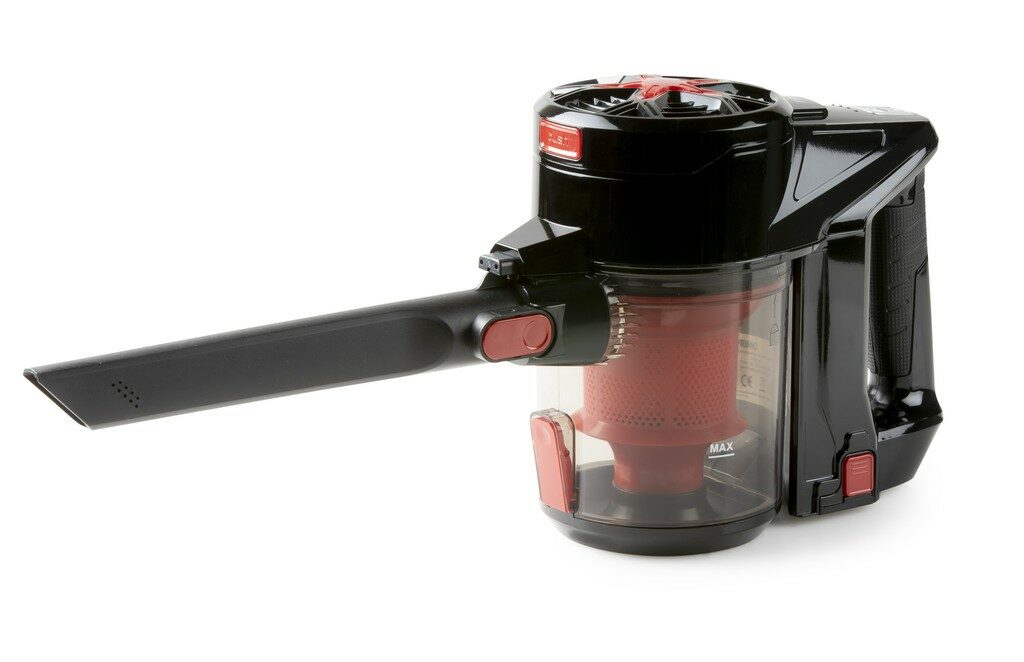 Výkonný bezdrátový tyčový vysavač se silnou 22,2V baterií s vysokou kapacitou vydrží vysávat až 50 minut v ECO režimu jako ruční vysavač, nebo na plný výkon spolu s elektricky poháněný turbokartáčem až 25 minut. S aku vysavačem 2 v 1 zvládnete hravě vysát všechny podlahy, nebo koberce i čalounění pohovky, nebo si během chvilky vysajete a uklidíte celý interiér auta, aniž byste museli přenášet váš velký těžký vysavač s kabelem. Cyklónový systém filtrace umožňuje vysávat bez ztráty výkonu déle než běžný sáčkový vysavač. Navíc můžete snadno po každém vysávání stiskem tlačítka vysypat obsah prachové nádoby rovnou do koše a mít tak vysavač stále připravený k vysávání.