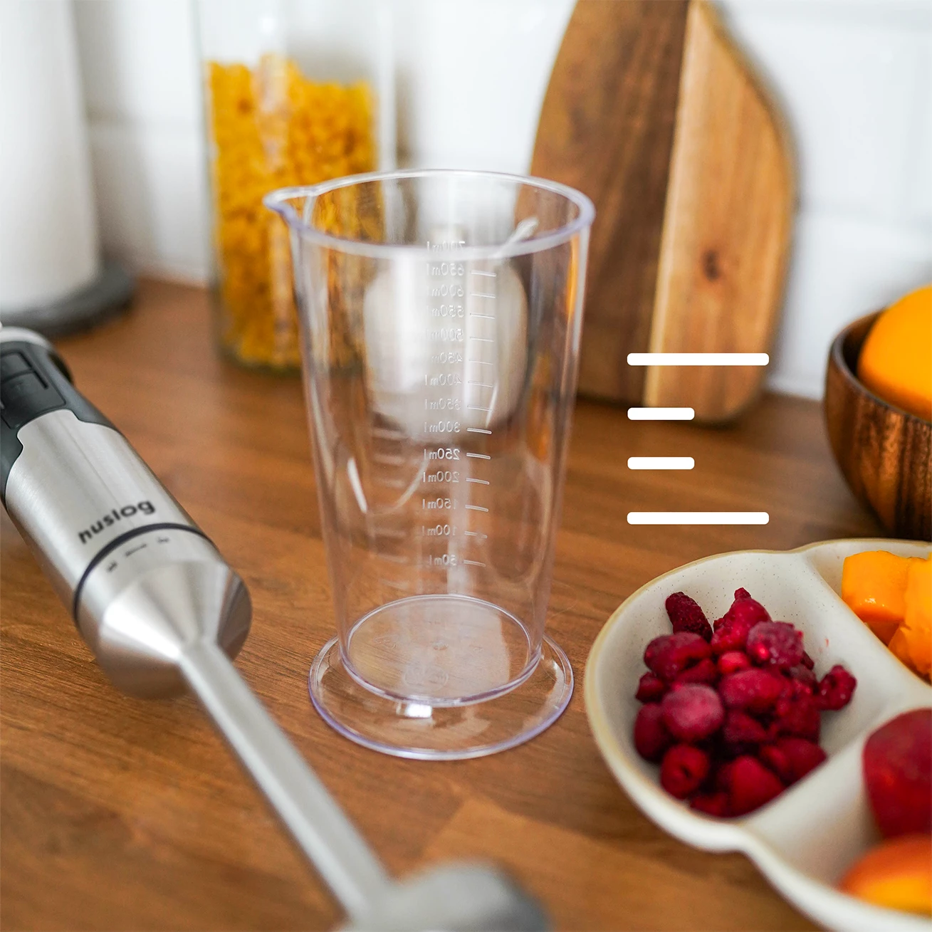 Nádoba s odměrkouSoučástí balení mixéru je praktická nádoba s odměrkou o objemu až 700 ml! Nyní můžete pohodlně odměřovat a mixovat ingredience současně díky nádobě s odměrkou, která je součástí sady. Efektivně a bez dalších přístrojů připravíte smoothie, koktejly nebo omáčky. |