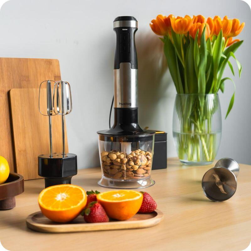 Výkon 1500WDíky výkonu až 1500 W si mixér poradí i s velmi tvrdými produkty. Takový výkon v kombinaci s 2břitým nožem z nerezové oceli v noži mixéru si poradí i s drcením ledu! 1000 W je také zárukou rychlého chodu šlehače a přesnosti drcení. |