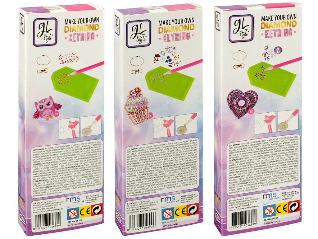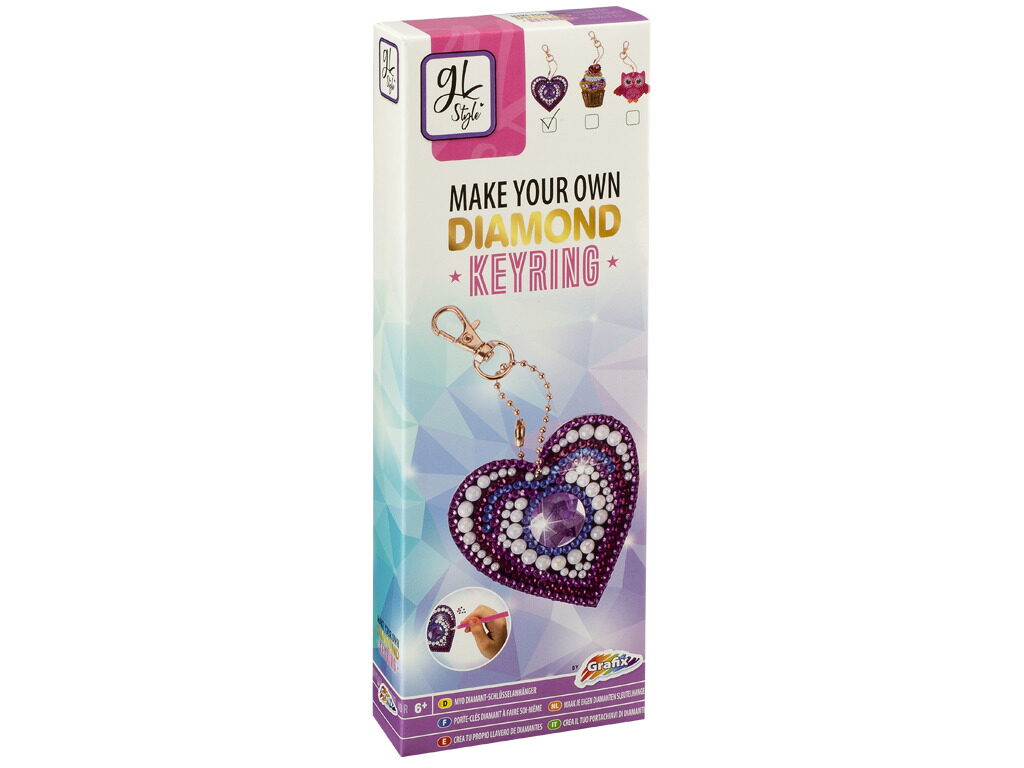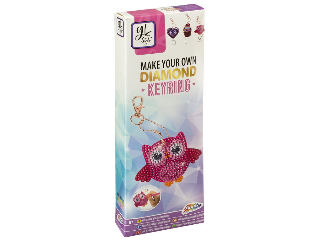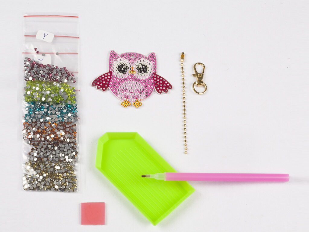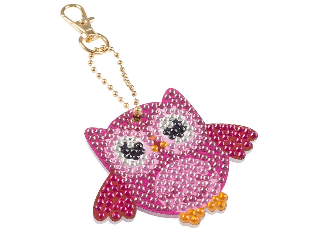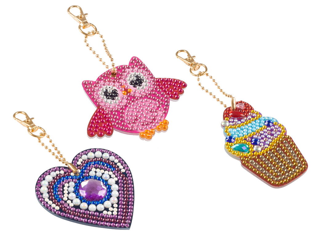 Udělej si svoji klíčenku pomocí kamínků Diamond – 3 druhy- sova, zmrzlina a srdíčko.