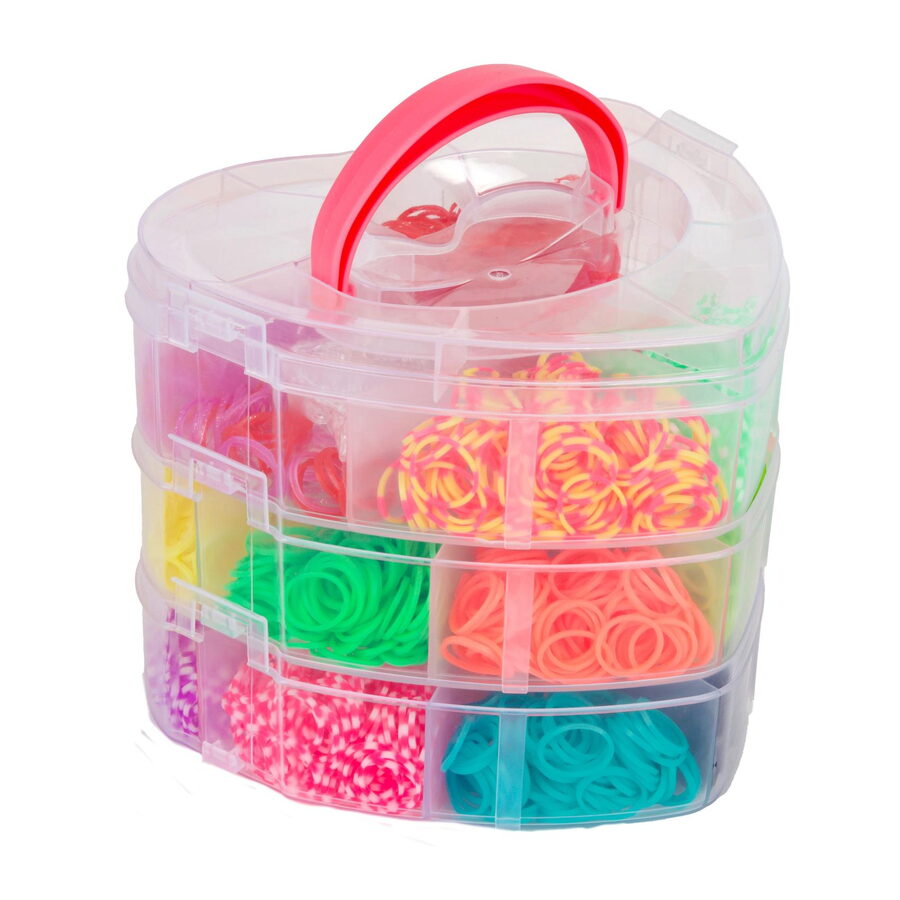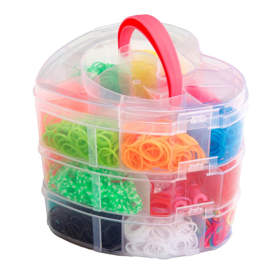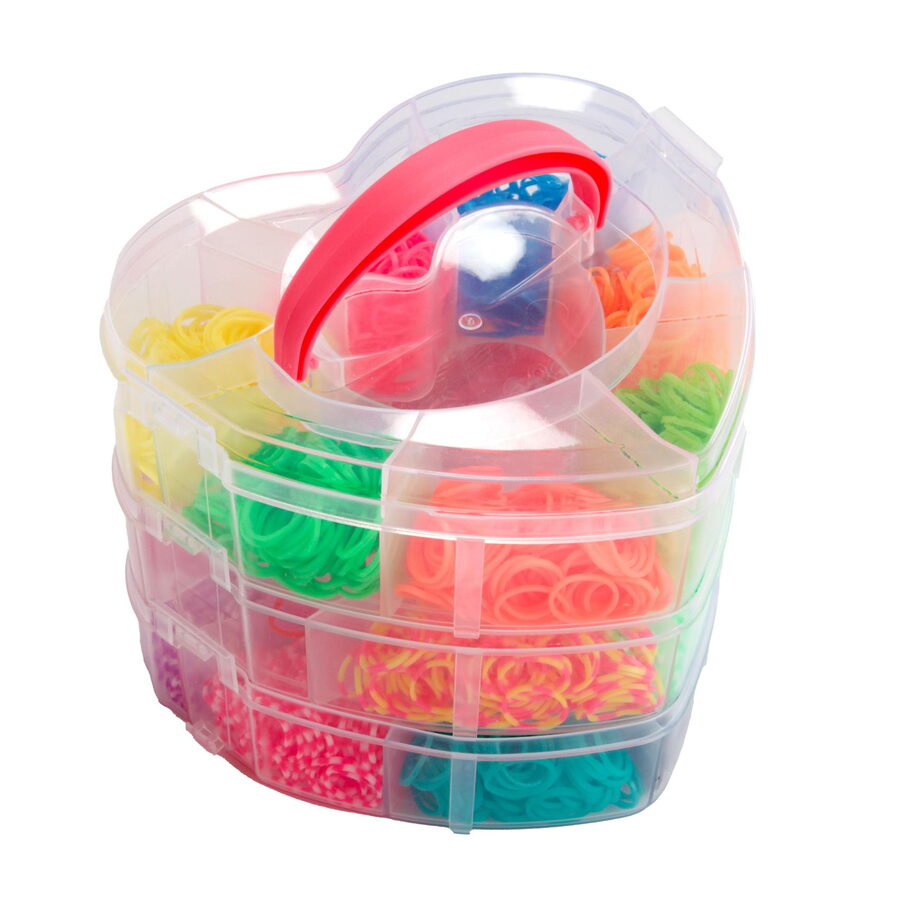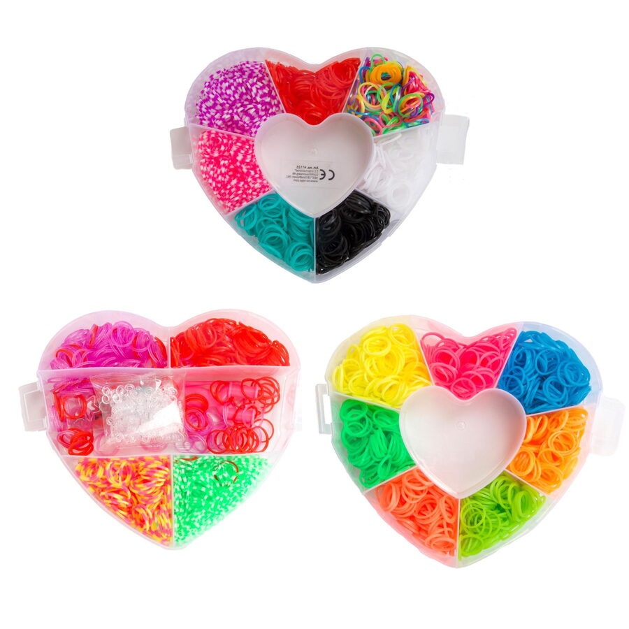 Udělej si svůj náramek - gumičky 2700ks + náčiní v plastové krabičce tvar srdce 16x13cm