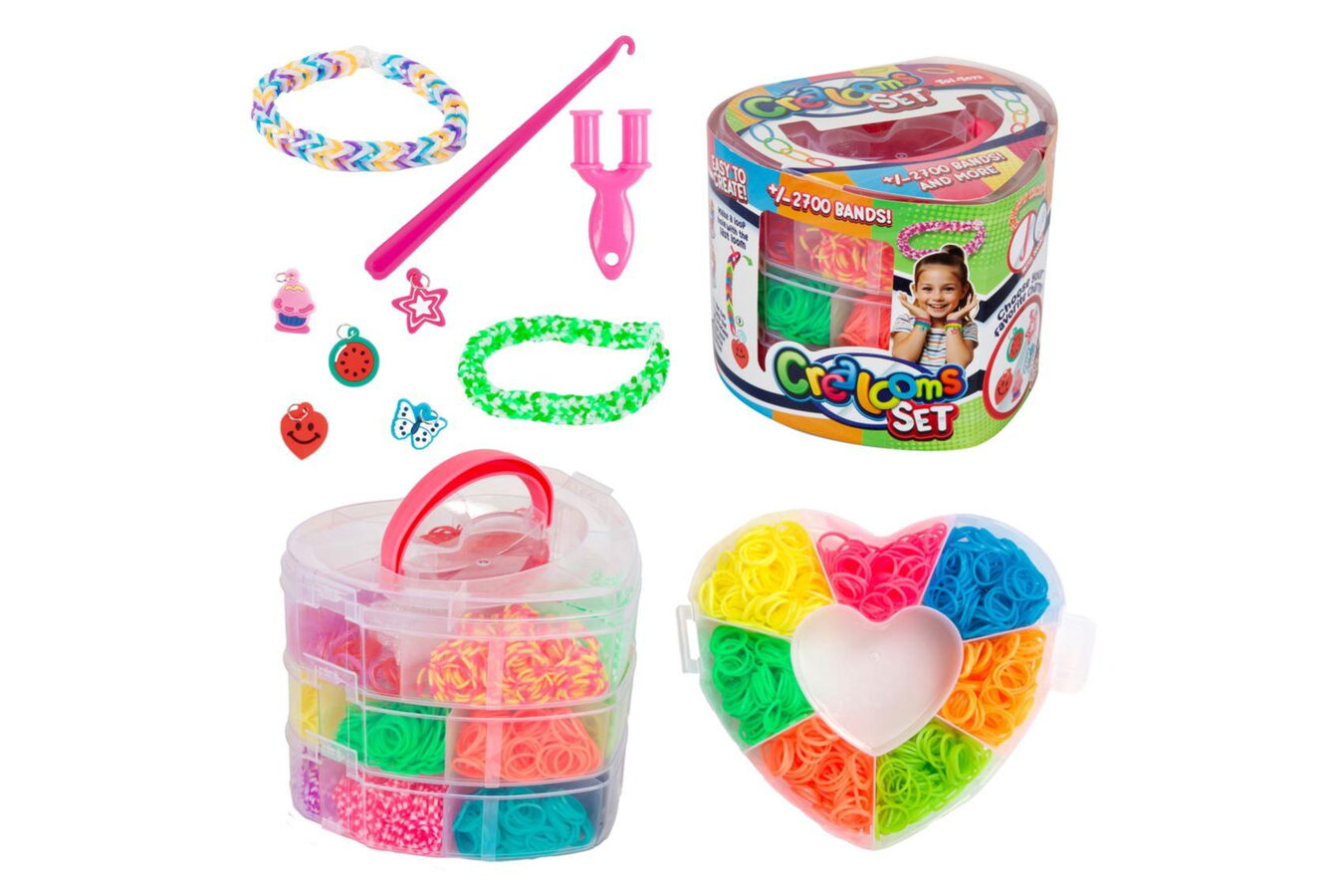 Kreativní sada pro výrobu vlastních náramků a doplňků potěší každého malého designéra! V praktické krabičce ve tvaru srdce najdete více než 2700 barevných gumiček, nástroje k pletení i ozdobné přívěsky. Skvělý způsob, jak rozvíjet jemnou motoriku, kreativitu a trpělivost. Součástí sady je vše, co děti potřebují k vytvoření vlastních originálních náramků, prstýnků nebo přívěsků – doma i na cestách.