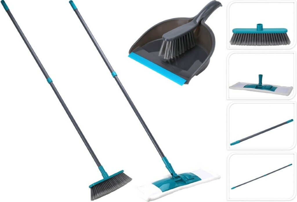 - skladná sada pro úklid interiéru domácnostiSada obsahuje:- teleskopické držadlo nastavitelné v rozmezí 58 - 124 cm- mop z mikrovlákna 44 x 15 x 8 cm- smeták pro interiéry 27 x 4 x 9 cm- smetáček 26 x 4 x 9 cm- lopatka 31 x 22 cm- barva: šedá / zelená