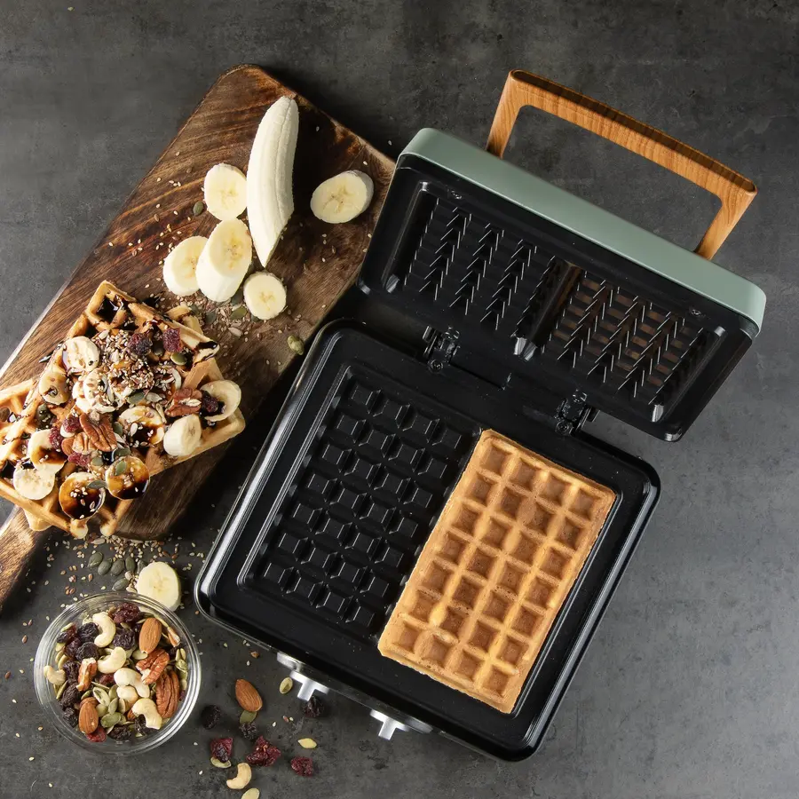 Prohloubené pečící desky v kombinaci s vestavěným termostatem zaručí, že si budete moci dopřát křupavé, až 2,6 cm vysoké vafle. Desky z nepřilnavého povrchu oceníte nejen při mytí, ale také při vyndavání již hotových vaflí, kdy budou vafle držet dokonale celistvý tvar.
