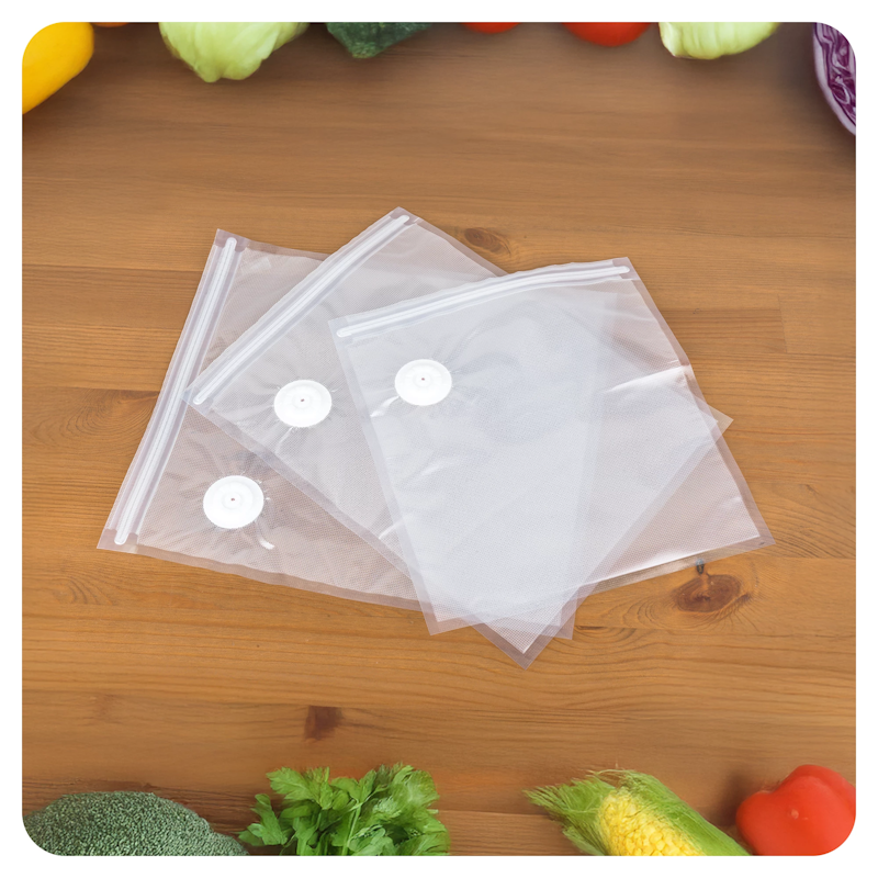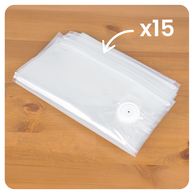 Přizpůsobte velikost sáčku konkrétní potravině. V sadě získáte celkem 15 sáčků ve třech rozměrech: 5x 26x28 cm, 5x 22x34 cm a 5x 26x34 cm. Tato variabilita vám umožní hermeticky zabalit různé druhy potravin a prodloužit jejich čerstvost až 5x déle.