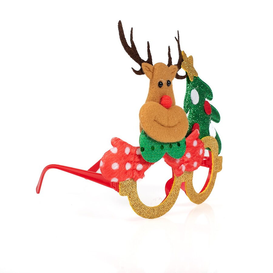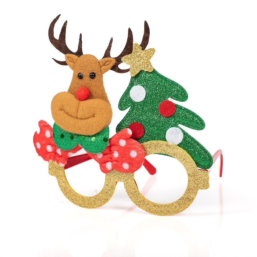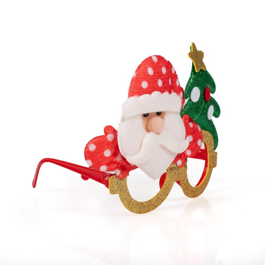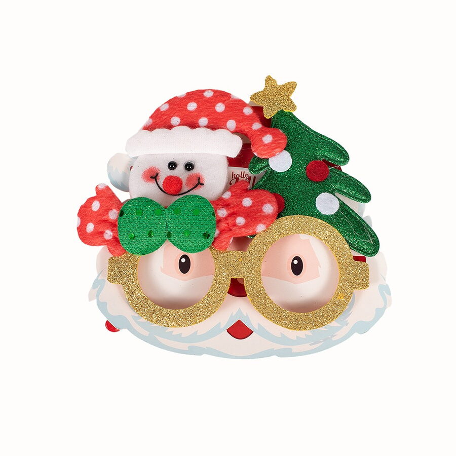 Vánoční brýle s třpytkami a dekoracemi – sobem, Santou, pejsek a sněhulákem. Velikost brýlí 17×14 cm