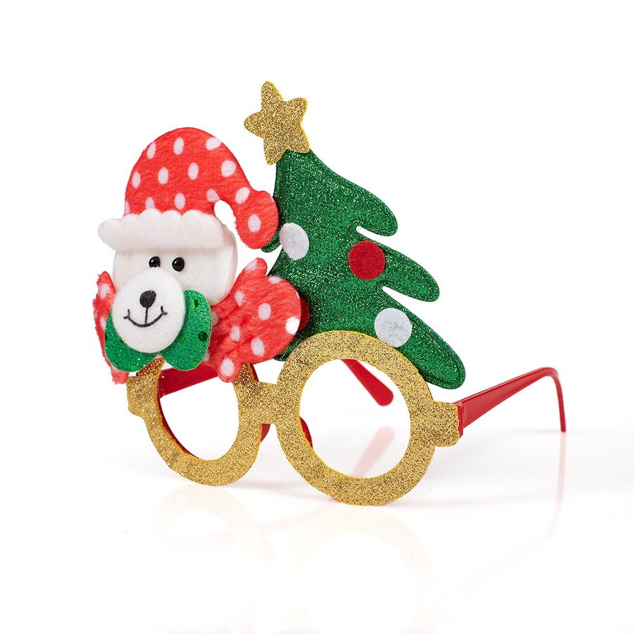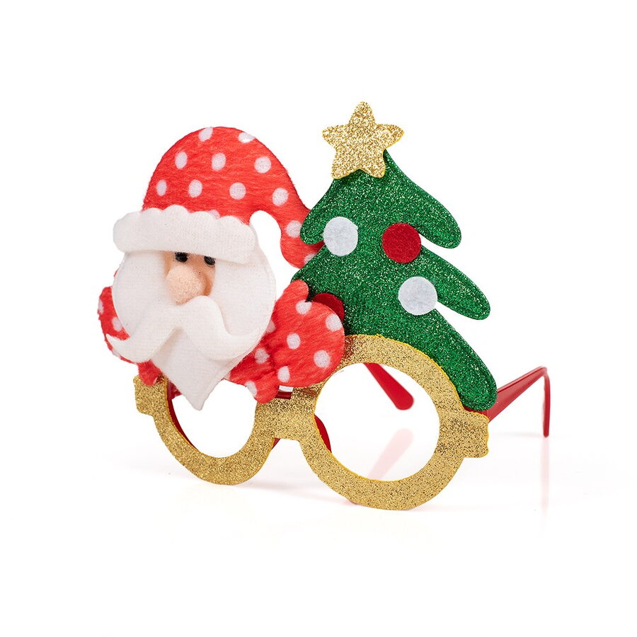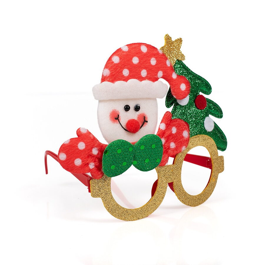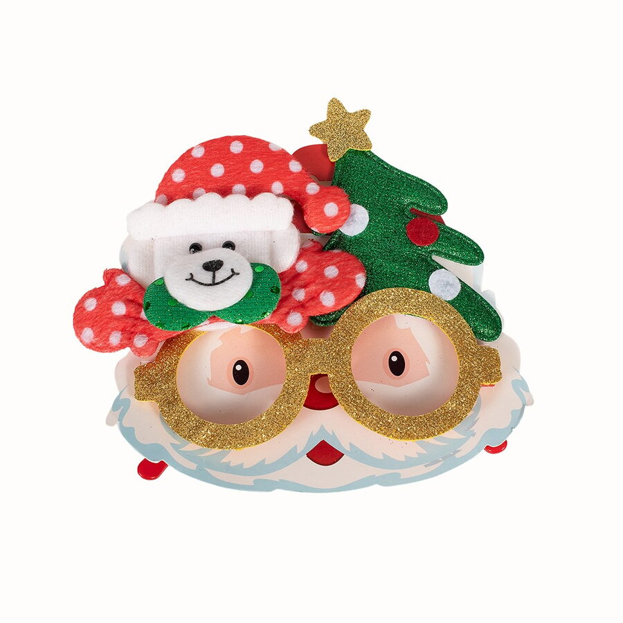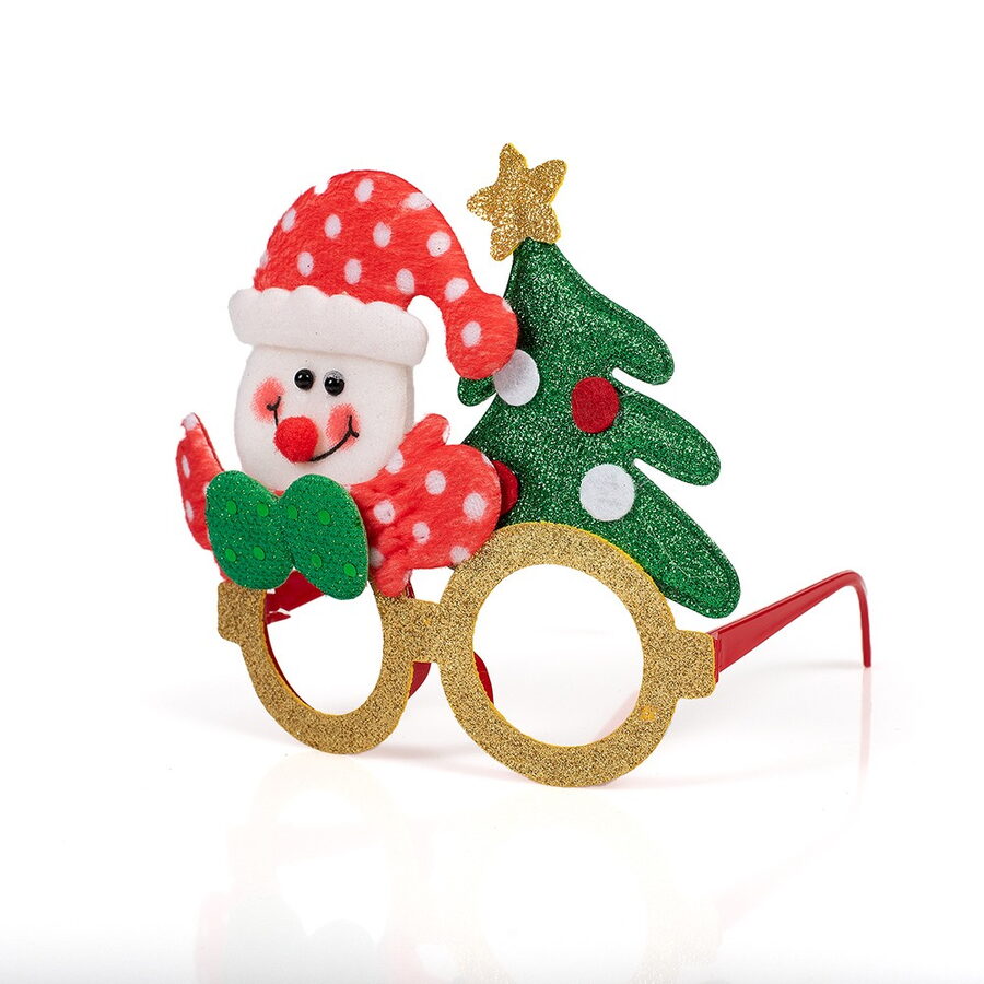Vánoční brýle s třpytkami a dekoracemi – sobem, Santou, pejsek a sněhulákem. Velikost brýlí 17×14 cm