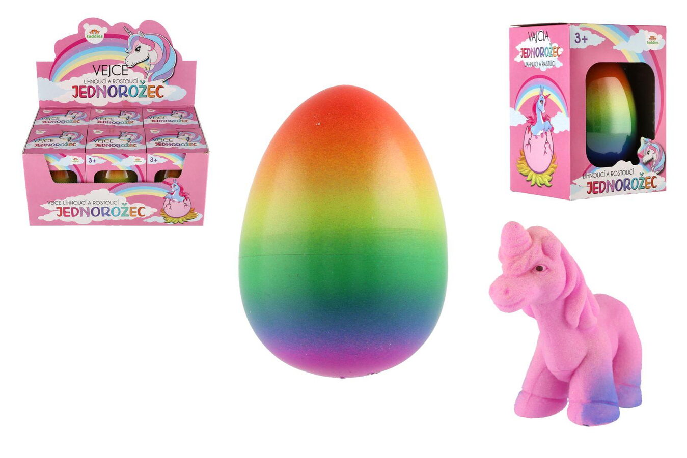 Vejce líhnoucí a rostoucí jednorožec plast 7x10cm v krabičce 9,5x13cm 6ks v boxu