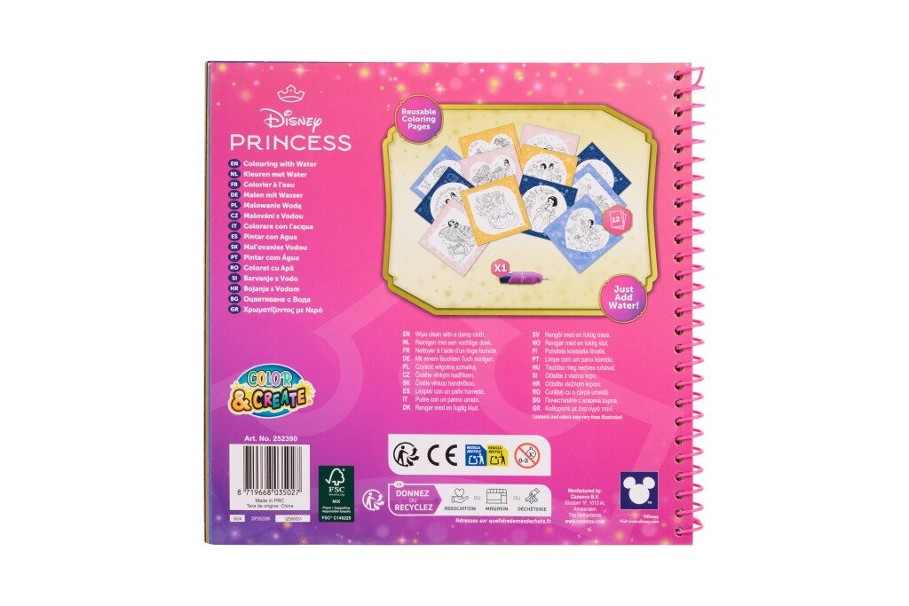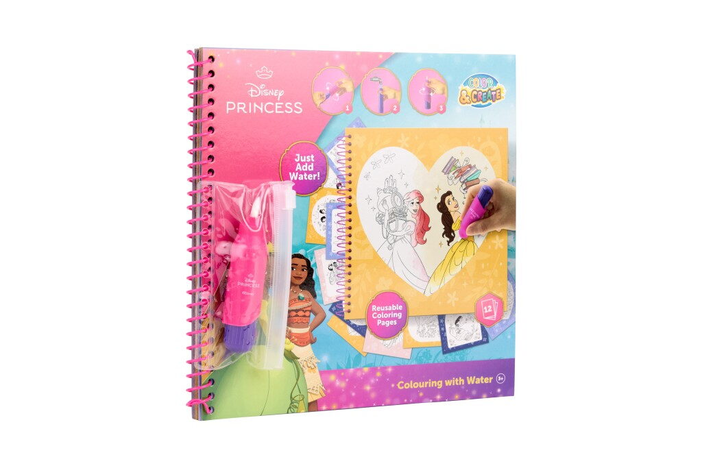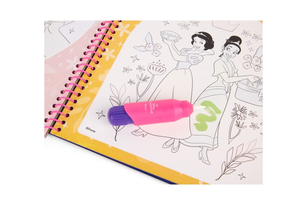 Kouzelná omalovánková kniha s motivy Disney princezen, která funguje na principu vodního malování. Stačí pouze naplnit přiložený štětec vodou a přetřít obrázek – barvy se samy objeví a vykouzlí nádhernou ilustraci.Opakovaně použitelná (po zaschnutí barvy opět zmizí a lze malovat znovu).Praktický formát 22,5 × 22,5 cm, ideální na cesty i domácí tvoření.