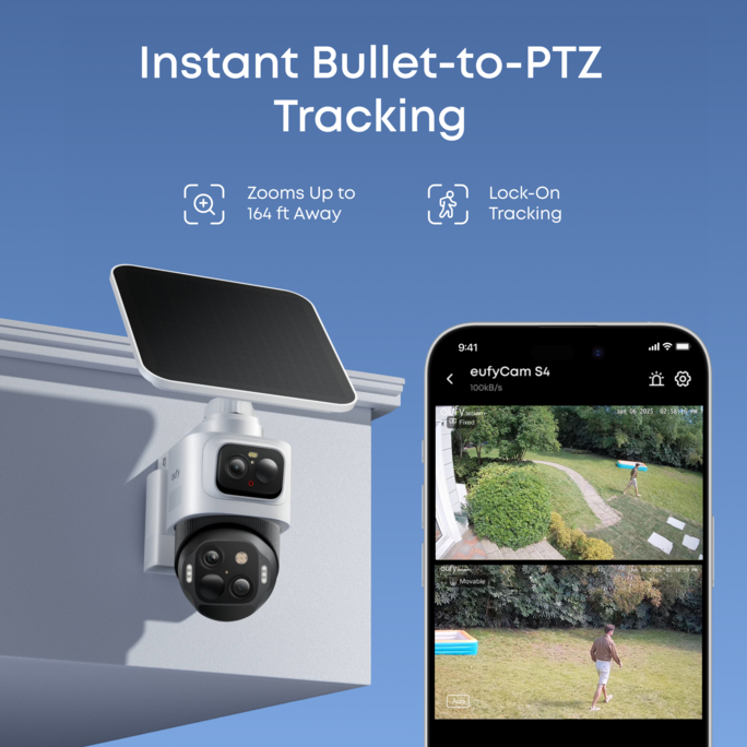 2x eufyCam S4 kamery s integrovaným solárním panelem