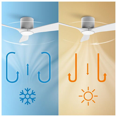 - systém reverzního otáčení motoru pro letní a zimní režim: v létě vytváří příjemný vánek a v zimě směruje teplý vzduch od stropu k podlaze