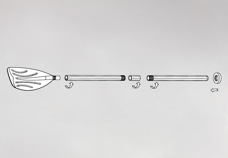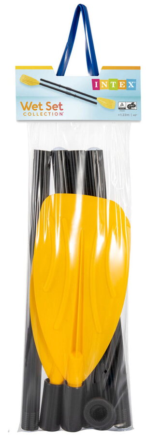 Plastová skládací vesla – pádla, určená k nafukovacím člunům, lehátkům a k dalším vodním plavidlům. Dvoudílné plastové násady s plastovým pádlem. Délka pádla 122 cm. Pevné spoje s dvojitým zajištěním.