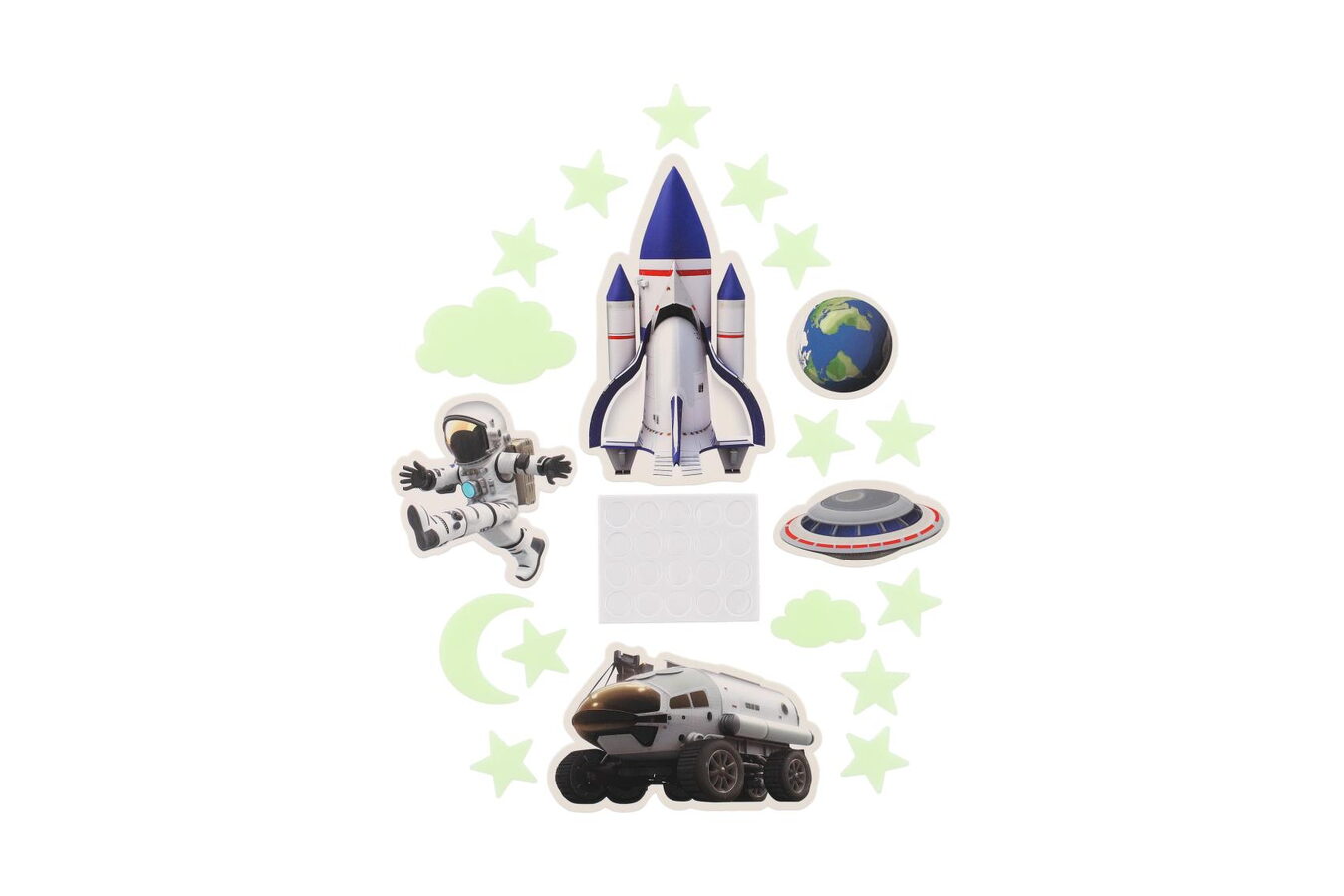 Sada obsahuje krásné vesmírné motivy, které se po nasvícení ve tmě rozsvítí a vytvoří okouzlující atmosféru plnou hvězd a planet. Tyto dekorace jsou ideální pro malé objevitele vesmíru, kteří si chtějí přinést kousek galaxie domů. Svítící vesmírné motivy nejenže zpříjemní večerní hodiny, ale také pomohou dětem usnout v kouzelném prostředí plném hvězd.