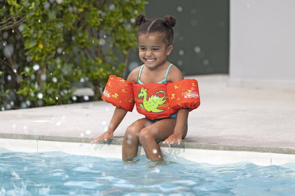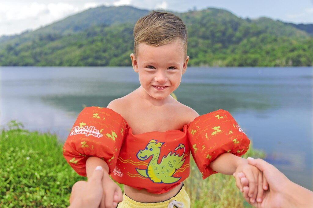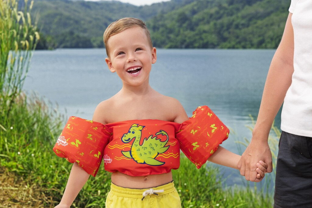 Dětská plavecká vesta s rukávky má veselý design netvora!
