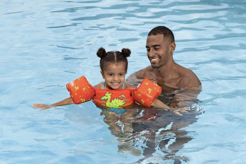 Vesta je ideální pro děti ve věku 2–6 let a poskytuje jim bezpečí a pohodlí při hře ve vodě. Výrobek je vyroben z polyesterové tkaniny a pěnových vložek, které poskytují dostatečný vztlak a pohodlí. Vesta má vzadu přezku, kterou si dítě samo nedokáže rozepnout, a nastavitelný popruh pro dokonalé uchycení. Poskytuje pohodlí a bezpečí pro začátečníky i zkušenější malé plavce. Nosnost: 15–30 kg. Rozměr hrudníku: 56 cm.