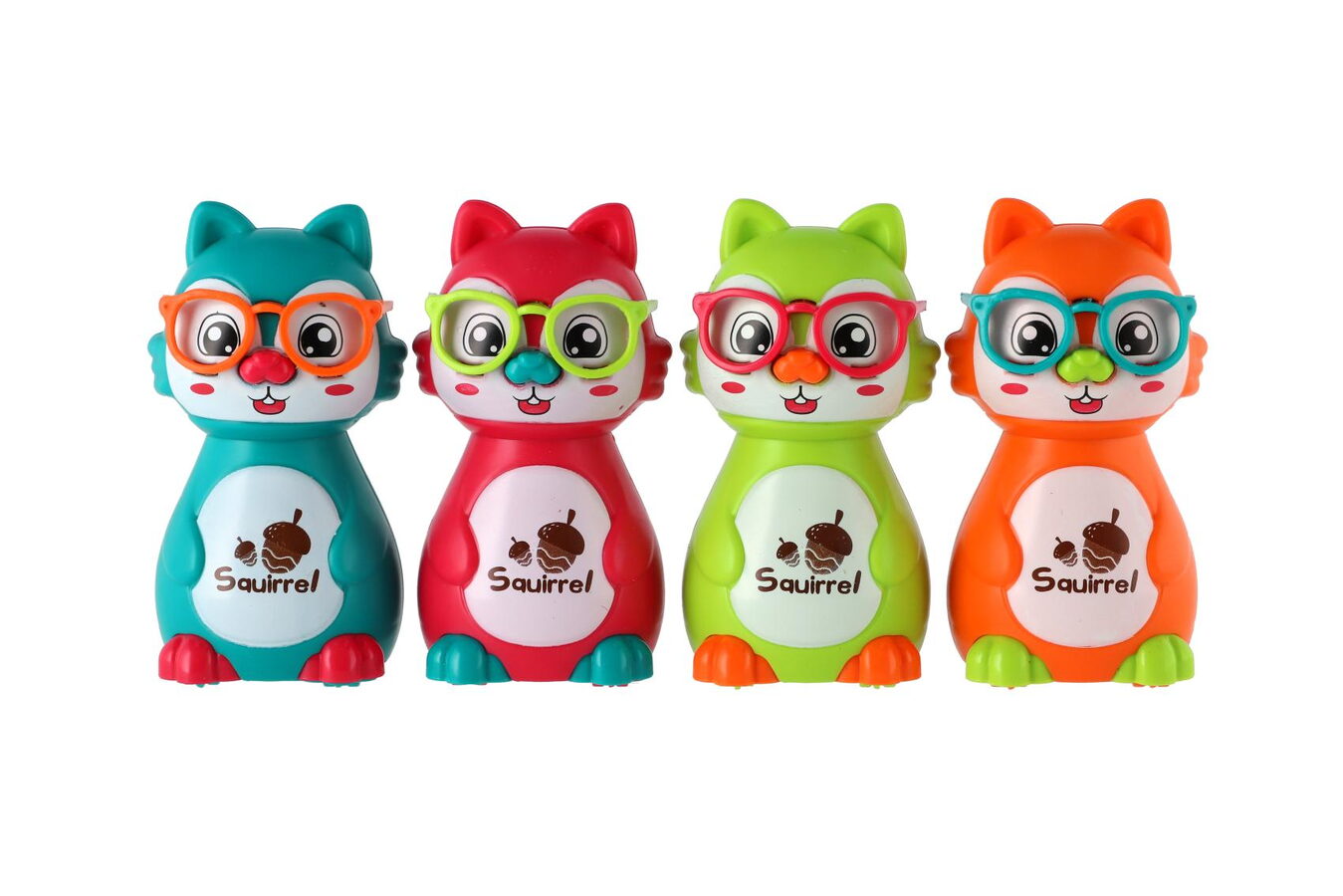 Veverka plast 10cm na setrvačník stlač hlavu a jeď 4 barvy 16ks v boxu