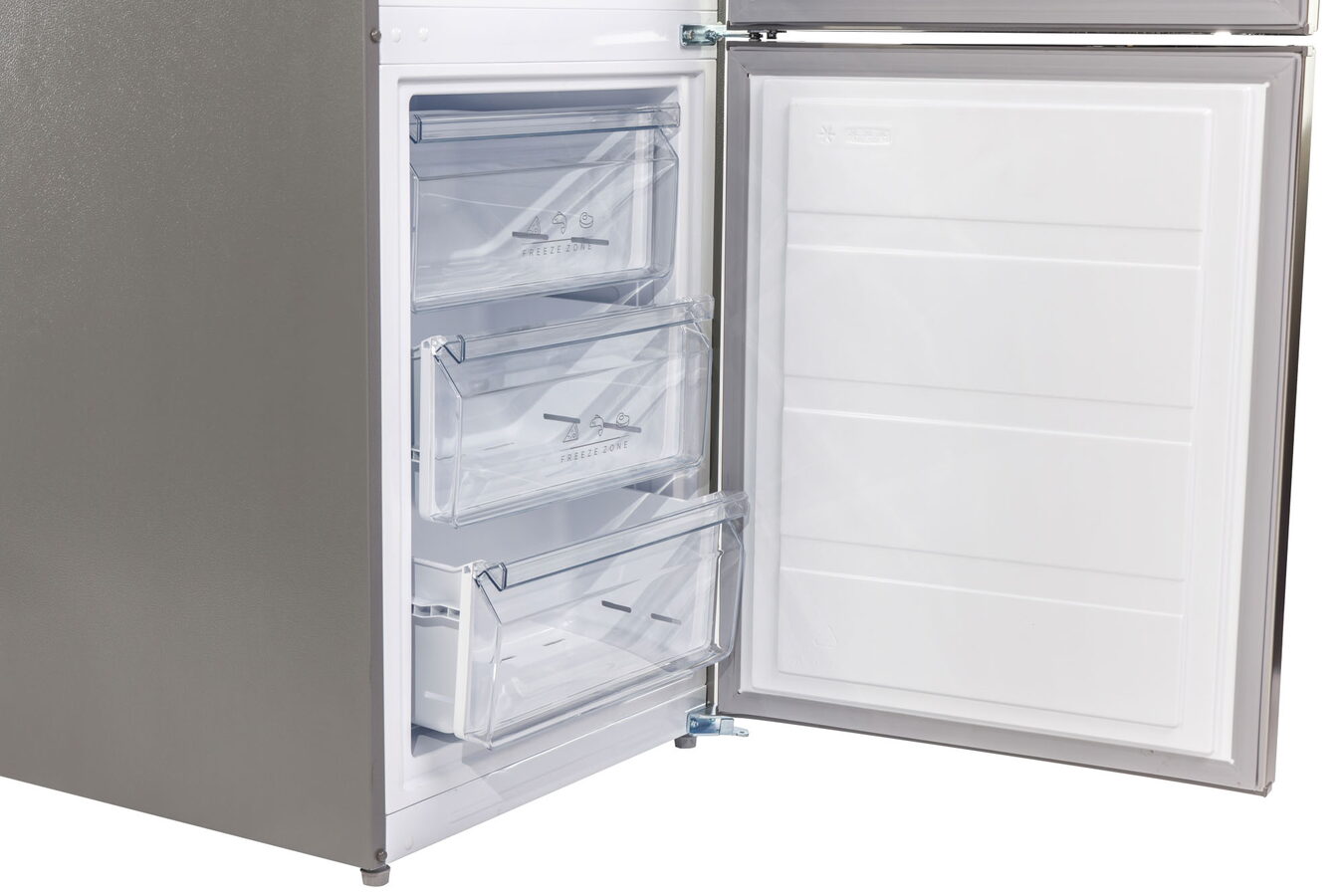 Technologie NO FROST nabízí snadnou údržbu bez nutnosti odmrazování chladničky a mrazničky a suchý vzduch uvnitř chladničky výrazně prodlužuje životnost potravin. Police chladničky jsou vyrobeny z pevného tvrzeného skla a chladnička má také průhlednou zásuvku, ve které lze nastavit teplotu v závislosti na typu skladovaných potravin. Průhledné zásuvky mrazničky usnadňují navigaci ve zmrazených potravinách.
