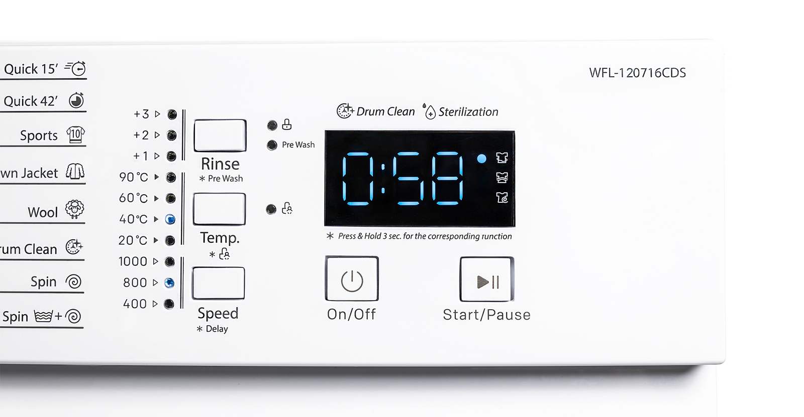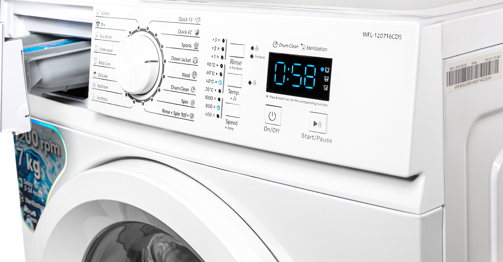 Pračka předem plněná VIVAX WFL-120716CDS, kapacita 7 kg prádla, rychlost odstřeďování 1200 ot./min, LED displej, 16 pracích programů, rozměry 85 x 59,5 x 48 cm, energetická třída A.