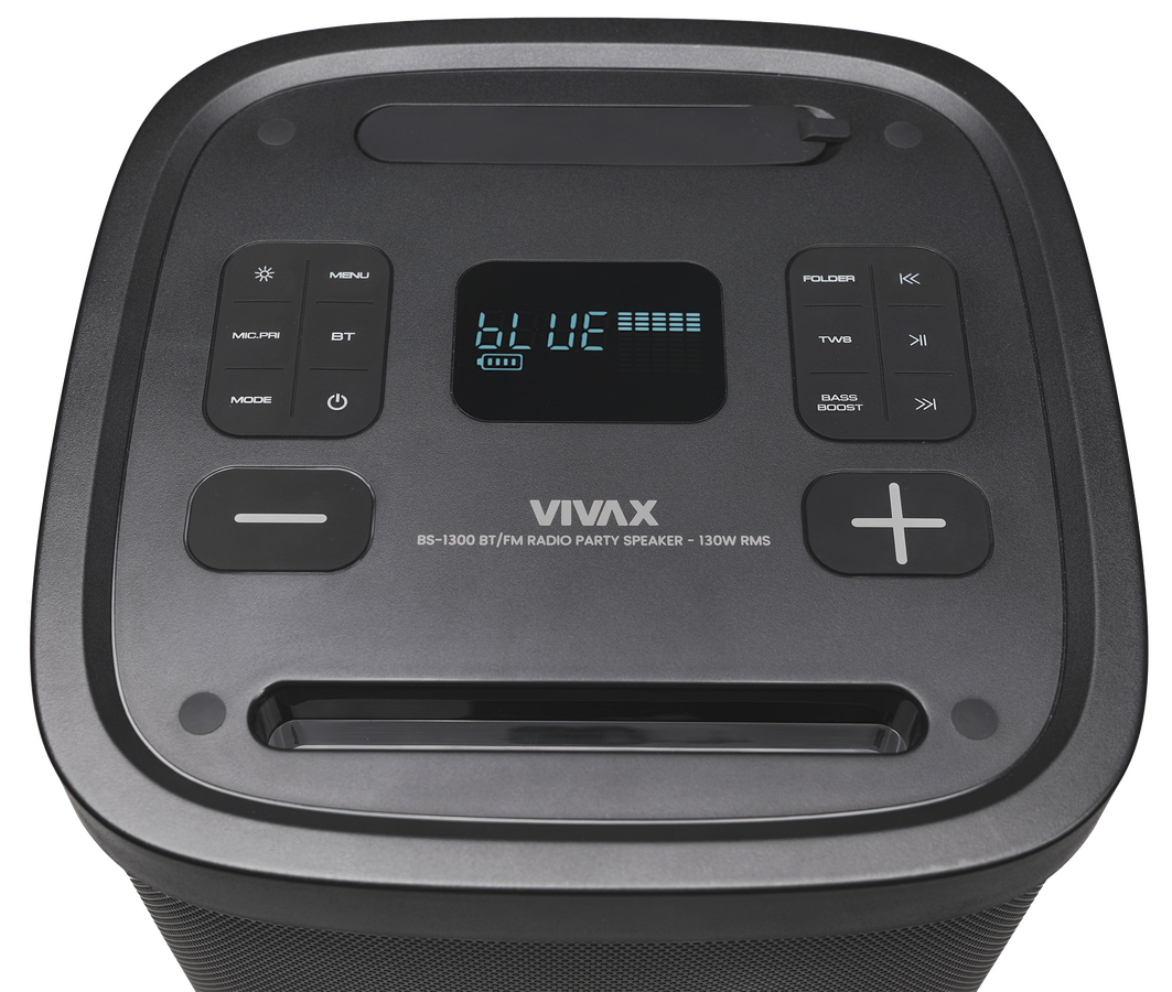 Karaoke reproduktor VIVAX BS-1300 poskytuje mnoho funkcí pro vychutnání vaší oblíbené hudby. Je vybavena bezdrátovým připojením Bluetooth, USB a vstupem LINE IN.