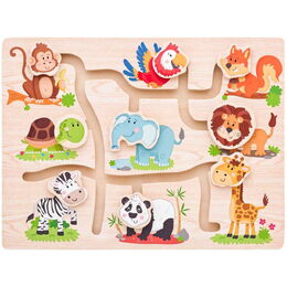 S vkládačkou domeček se malé děti učí rozpoznávat různé tvary a barvy. Domeček má na střeše otvory, do kterých děti vkládají příslušné tvary, které nepropadnou. Po bocích má domeček dveře, které jsou barevně odlišeny a mají své vlastní vkládací zvířátko. Vysvobodíte je příslušným klíčem. Každé dveře mají svůj vlastní klíč. Hra rozvíjí zábavnou formou trpělivost, orientaci v celku, logické myšlení a motoriku.