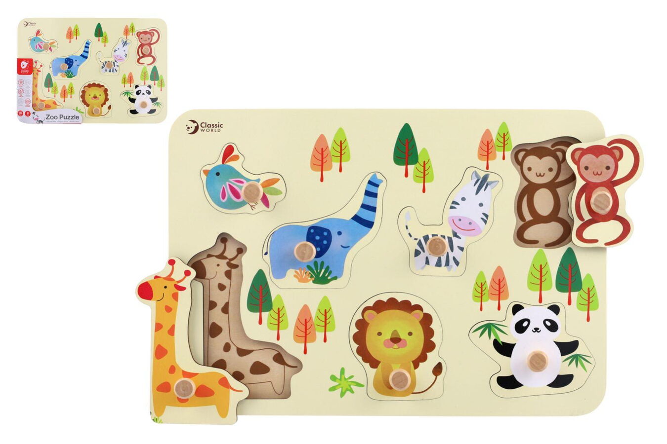 Teddies vkládačka/puzzle deskové obrysové zoo dřevo 30x21cm ve fólii