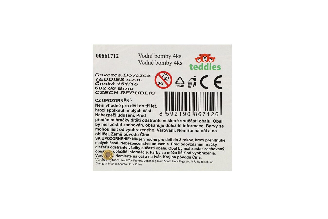 Vodní bomby potěší všechny děti i dospělé. Balonky stačí nechat nasáknout vodou a použít je jako bomby při letních bitkách na zahradě. Legraci si užije opravdu celá rodina od nejmenších až po ty největší. V letních dnech je však hlavní, že se i trochu zchladíte. Obsahuje 4 ks.