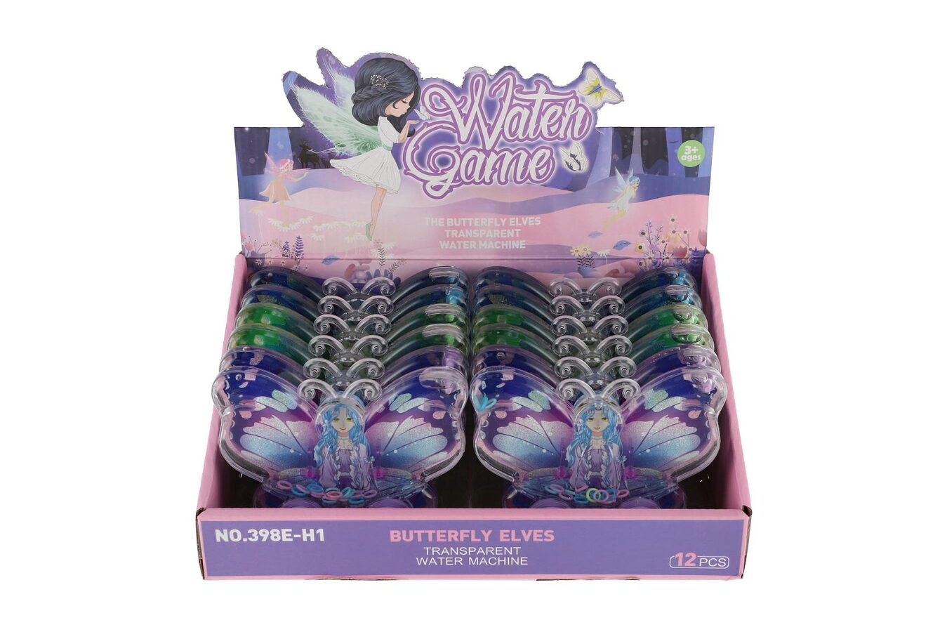 Vodní hra hlavolam 13x11cm plast motýl 3 barvy 12ks v boxu