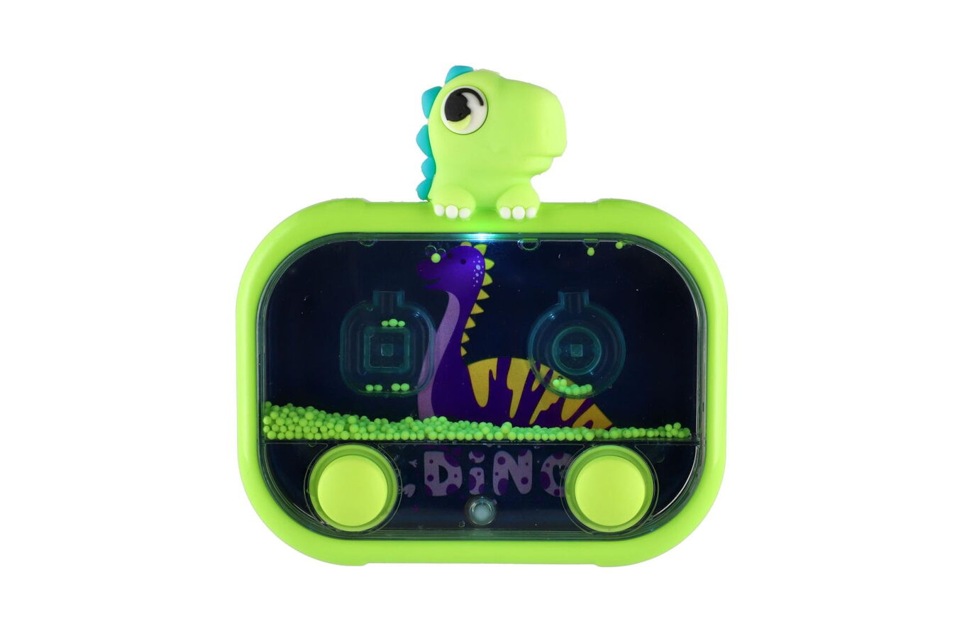 Zábavná vodní hra s motivem roztomilých dinosaurů potěší všechny malé milovníky pravěku. Stačí stisknout tlačítka, rozpohybovat barevné kuličky ve vodě a snažit se je dostat do terčíků. Jednoduchý princip zabaví děti na dlouhou dobu a podporuje jejich postřeh, trpělivost i jemnou motoriku. Hra navíc svítí, takže je atraktivní i ve tmě a dodává hře ještě kouzelnější efekt.