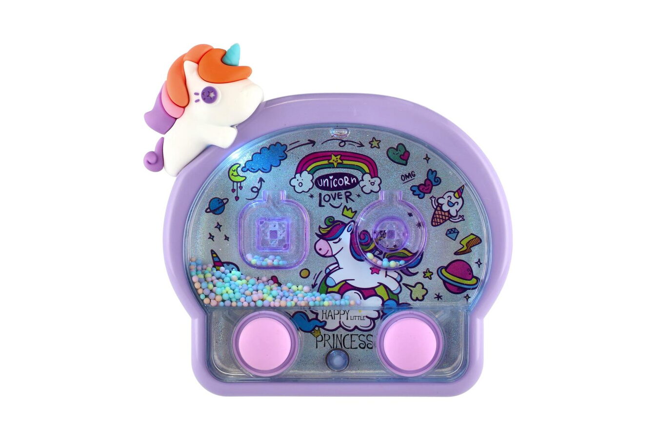 Kouzelná vodní hra s motivem roztomilých jednorožců potěší každou malou princeznu. Stačí stisknout tlačítka, rozpohybovat barevné kuličky a trefovat je do připravených terčíků. Jednoduchý princip zabaví děti na dlouhou dobu, podporuje soustředění, trpělivost i jemnou motoriku. Tato varianta navíc svítí, takže hra vypadá ještě efektněji – světélka krásně podtrhují kouzelný jednorožčí motiv.