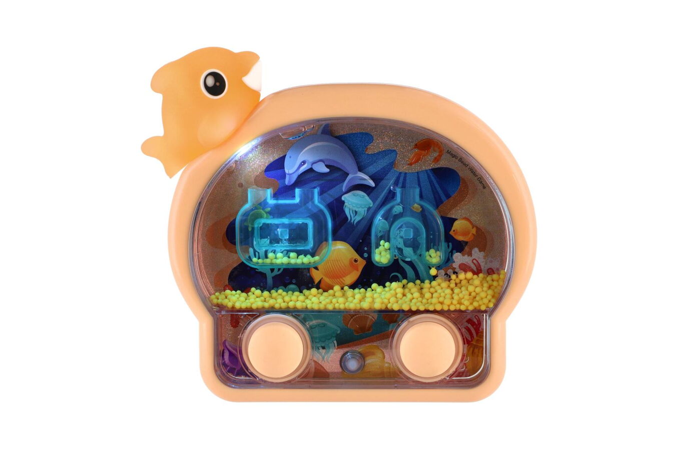 Zábavná vodní hra ve veselé podobě mořských zvířátek potěší každé dítě. Stačí stisknout tlačítka, rozpohybovat barevné kuličky ve vodě a trefovat je do připravených otvorů. Hra rozvíjí trpělivost, jemnou motoriku i postřeh – a díky kompaktní velikosti je ideální na cesty. Tato varianta navíc svítí, takže přináší ještě více zábavy, zejména ve tmě.