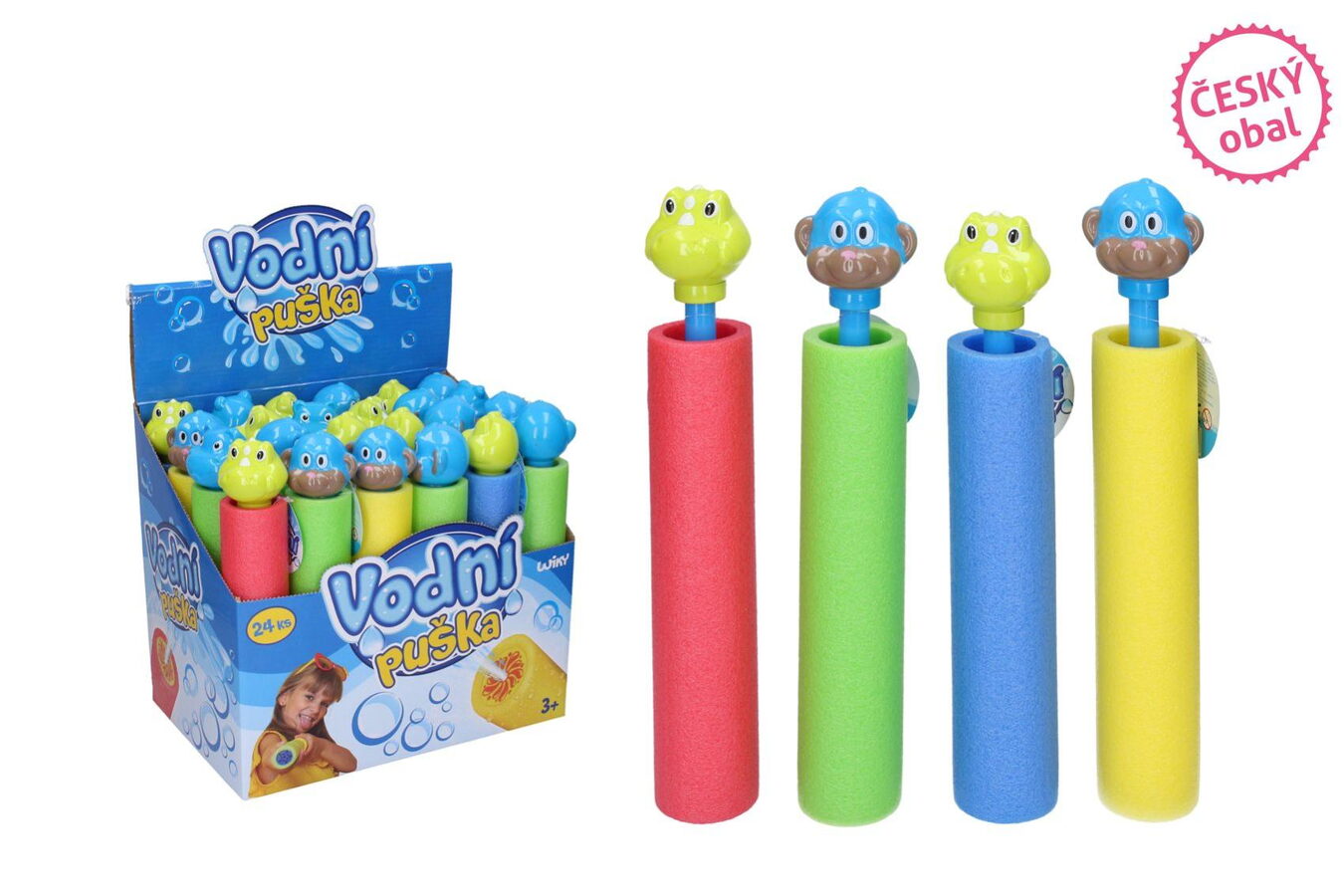 Vodní trubice/puška zvířátko pěnová 27x5cm 3 druhy 24ks v boxu