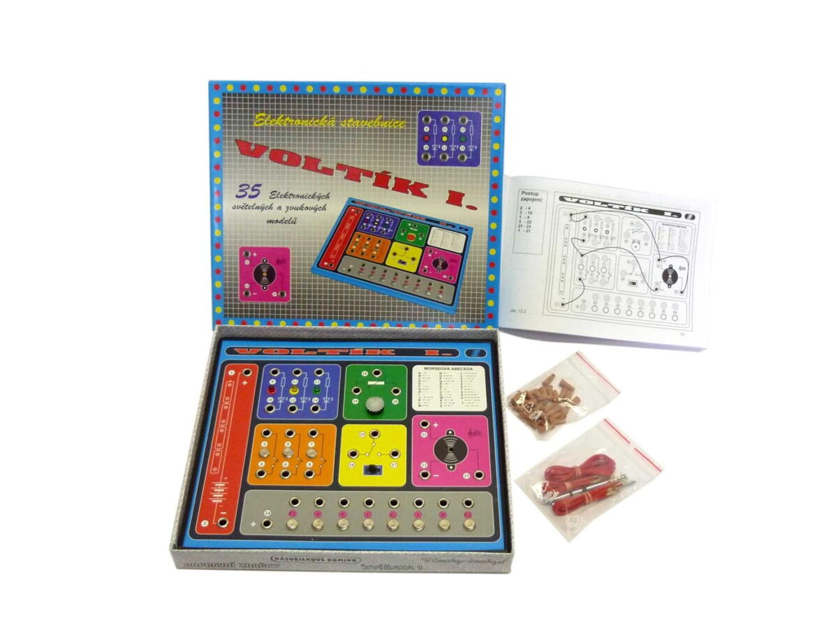Společenská hra Voltík I. nadchne všechny malé modeláře a techniky, kteří rádi zkoumají každý elektronický přístroj a snaží se mu přijít na kloub. Tato skvělá stavebnice umožňuje dětem sestavit podle jednoduchých návodů až 35 elektronických světelných a zvukových modelů bez pájení s barevnými světly a tónovým bzučákem. Hra přitom nevyžaduje žádné znalosti elektroniky, modely zvládne sestavit každé šikovné dítě ve věku od 6 let.