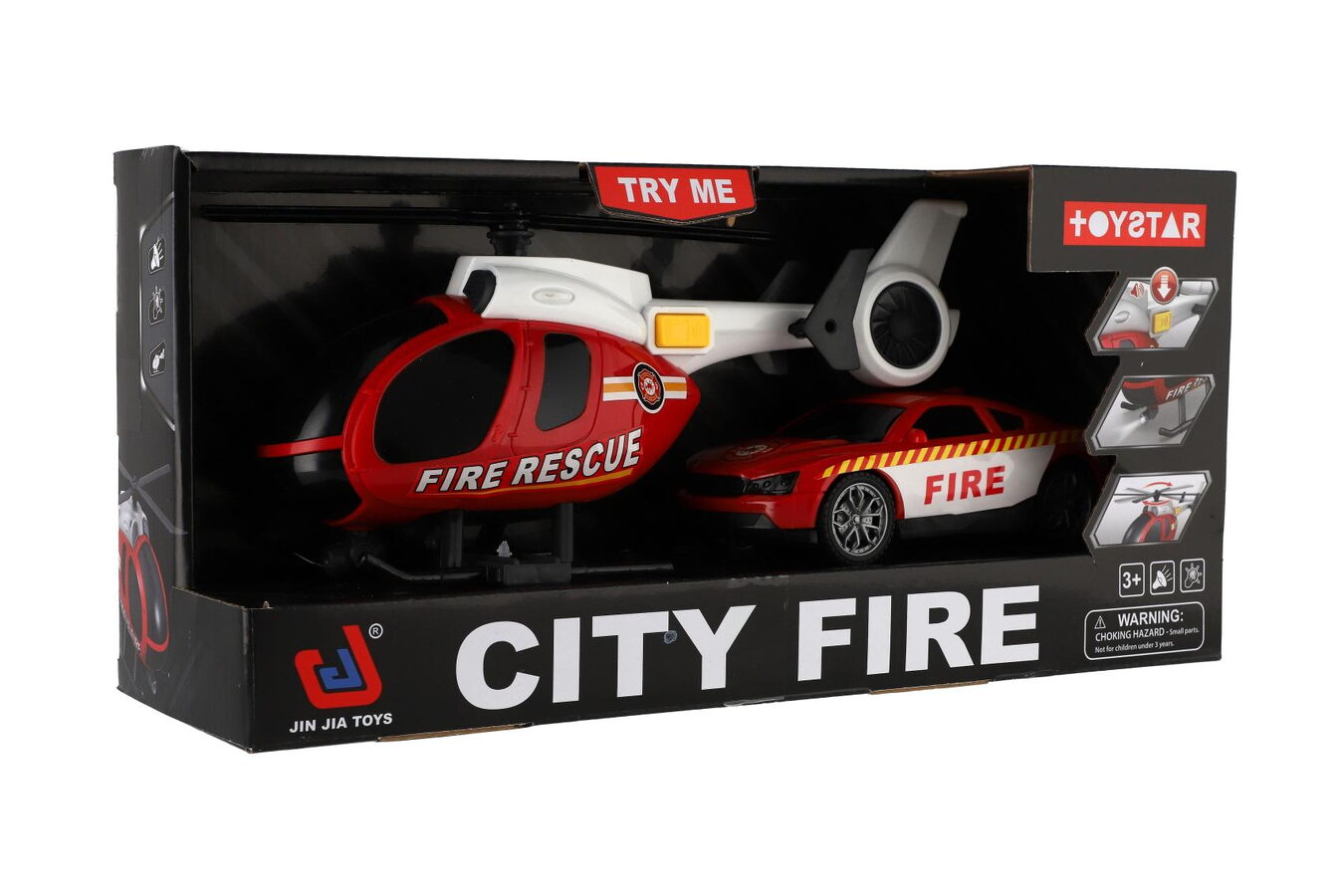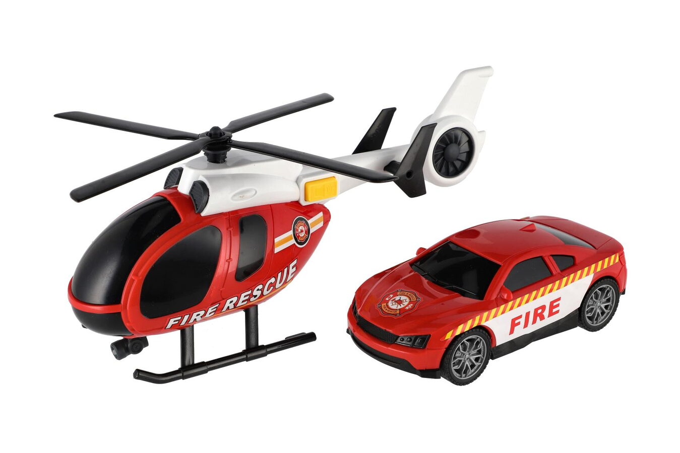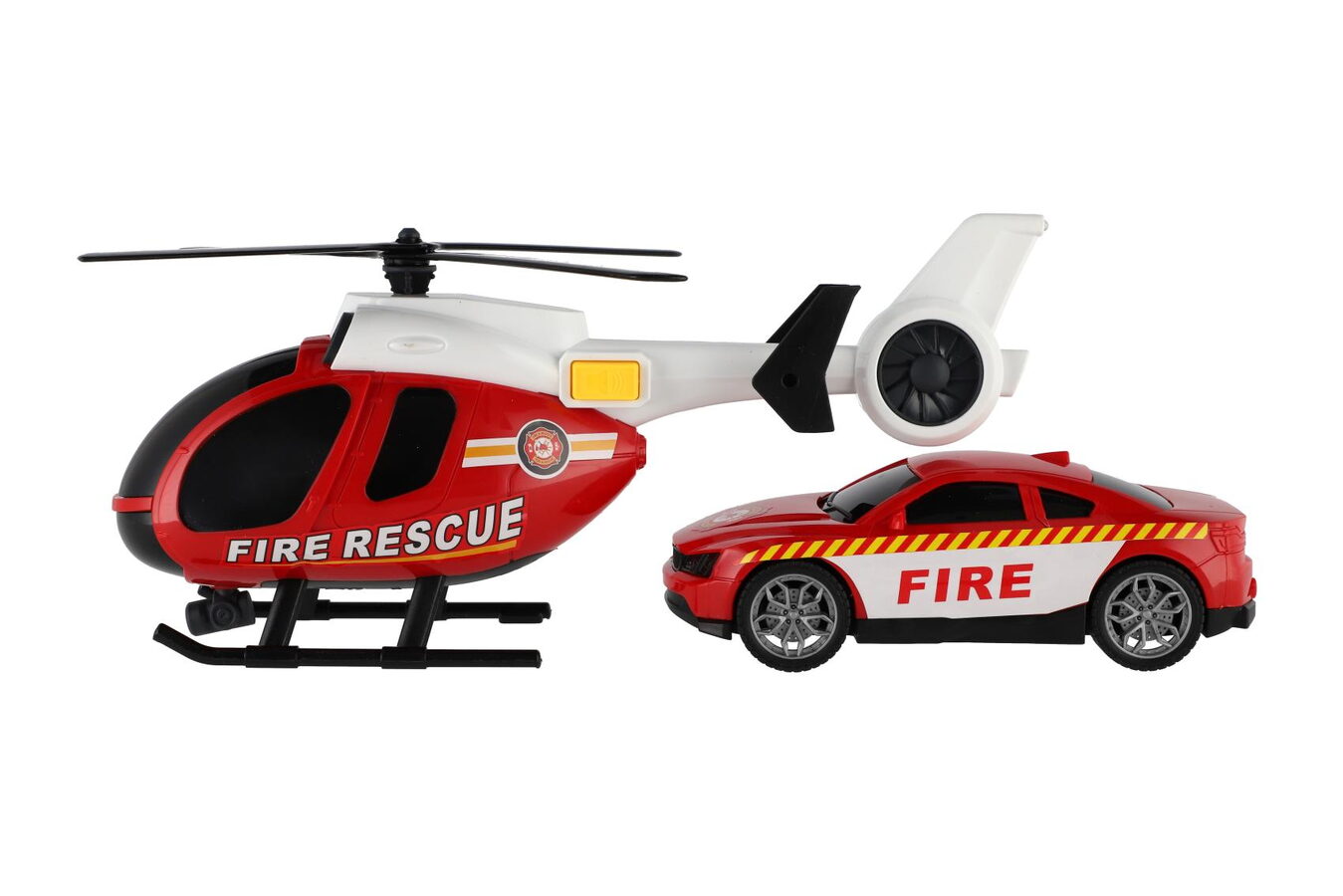 Vrtulník,auto hasiči plast na baterie se světlem se zvukem v krabici 37x17,5x12cm