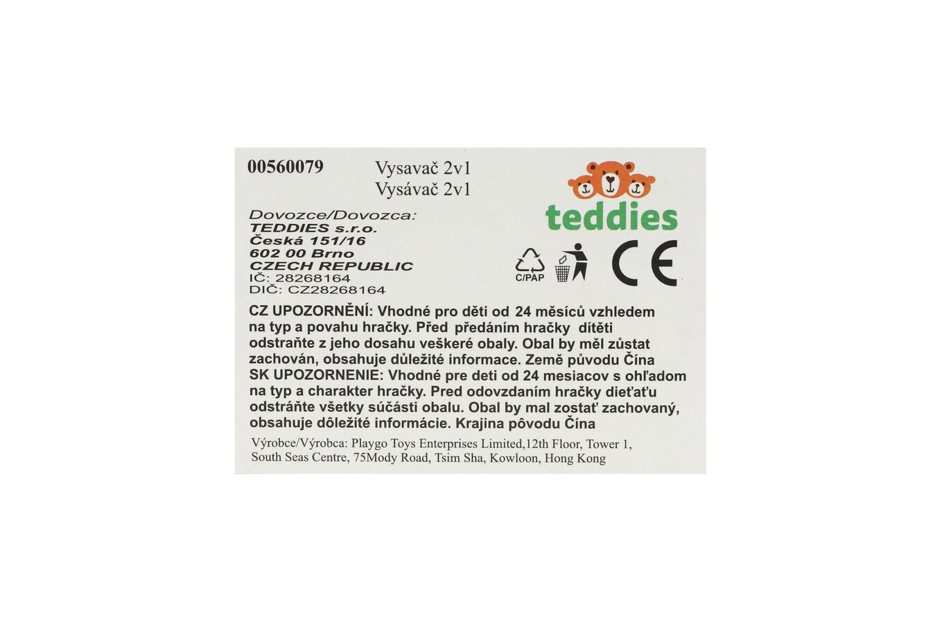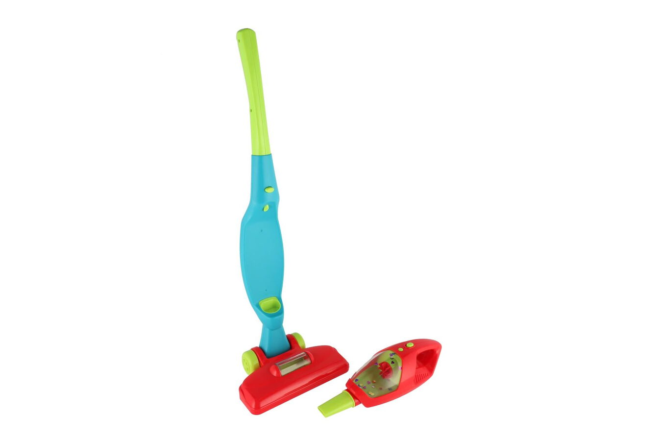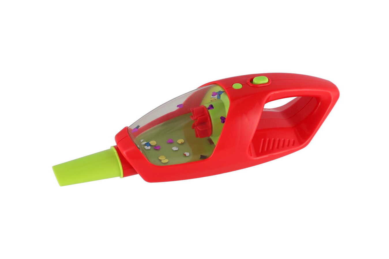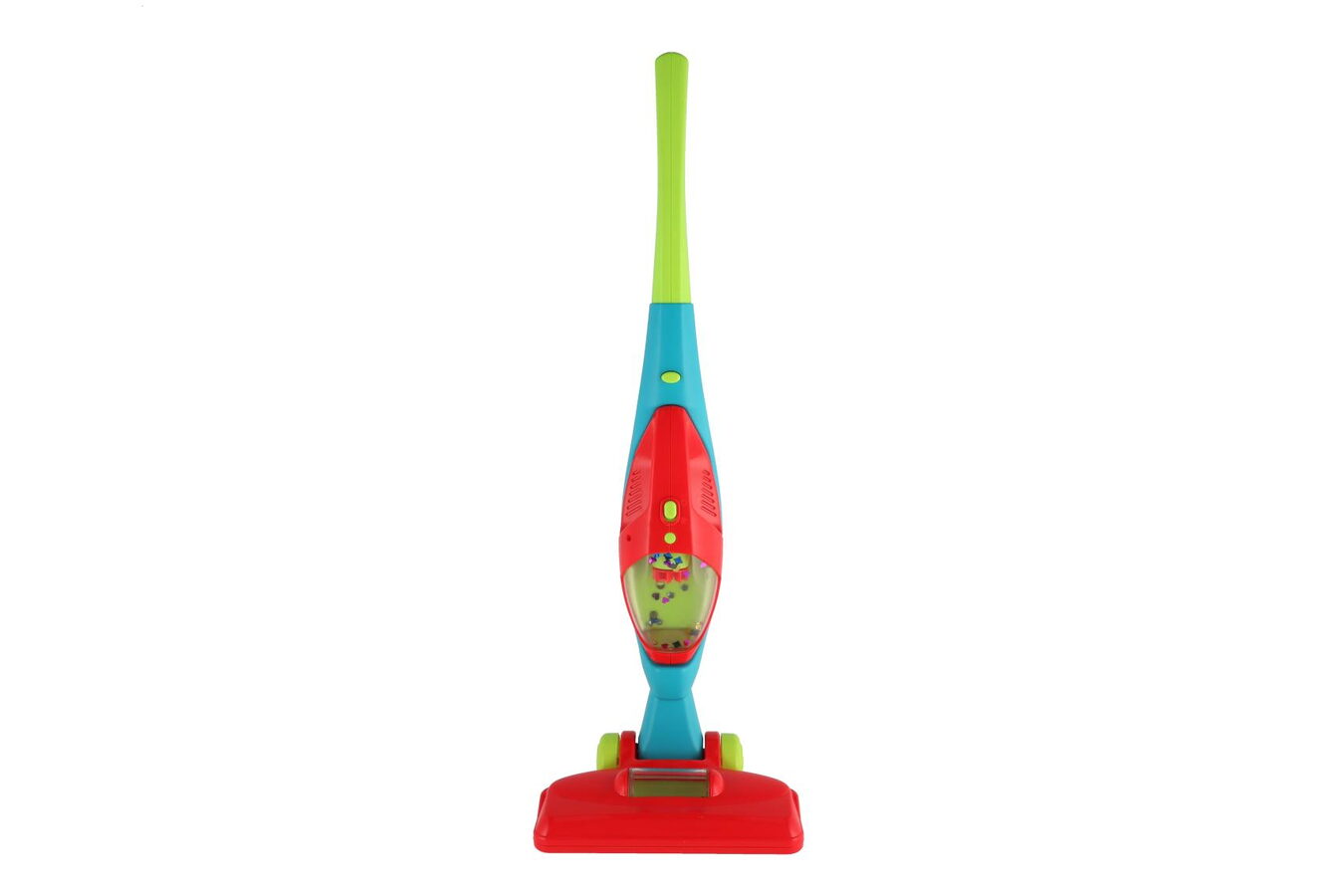 Dětský plastový vysavač je vyroben v moderním stylu a je určen dětem, které se seznamují formou hry s potřebným uklízením. Při použití se pohybují symbolické nečistoty ve formě lesklých papírků a kuliček. Zakomponované světlo, odpojitelný ruční vysavač, zvukové a světelné efekty, sklopná rukojeť pro snadné uskladnění.