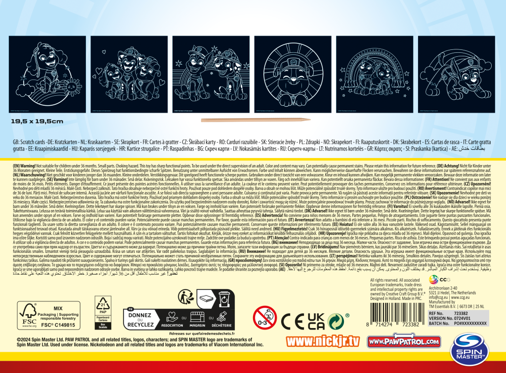 Zažij spoustu zábavy s vyškrabávacími obrázky inspirovanými seriálem Tlapková Patrola! Pomocí speciálního pera odkryj barevné motivy skryté pod černou vrstvou a sleduj, jak ožívají oblíbené postavičky. Ideální pro malé umělce a všechny fanoušky kouzelného světa Tlapkové patroly. Velikost obrázku 19,5×19,5 cm. Balení obsahuje 6 obrázků + škrabací pero.