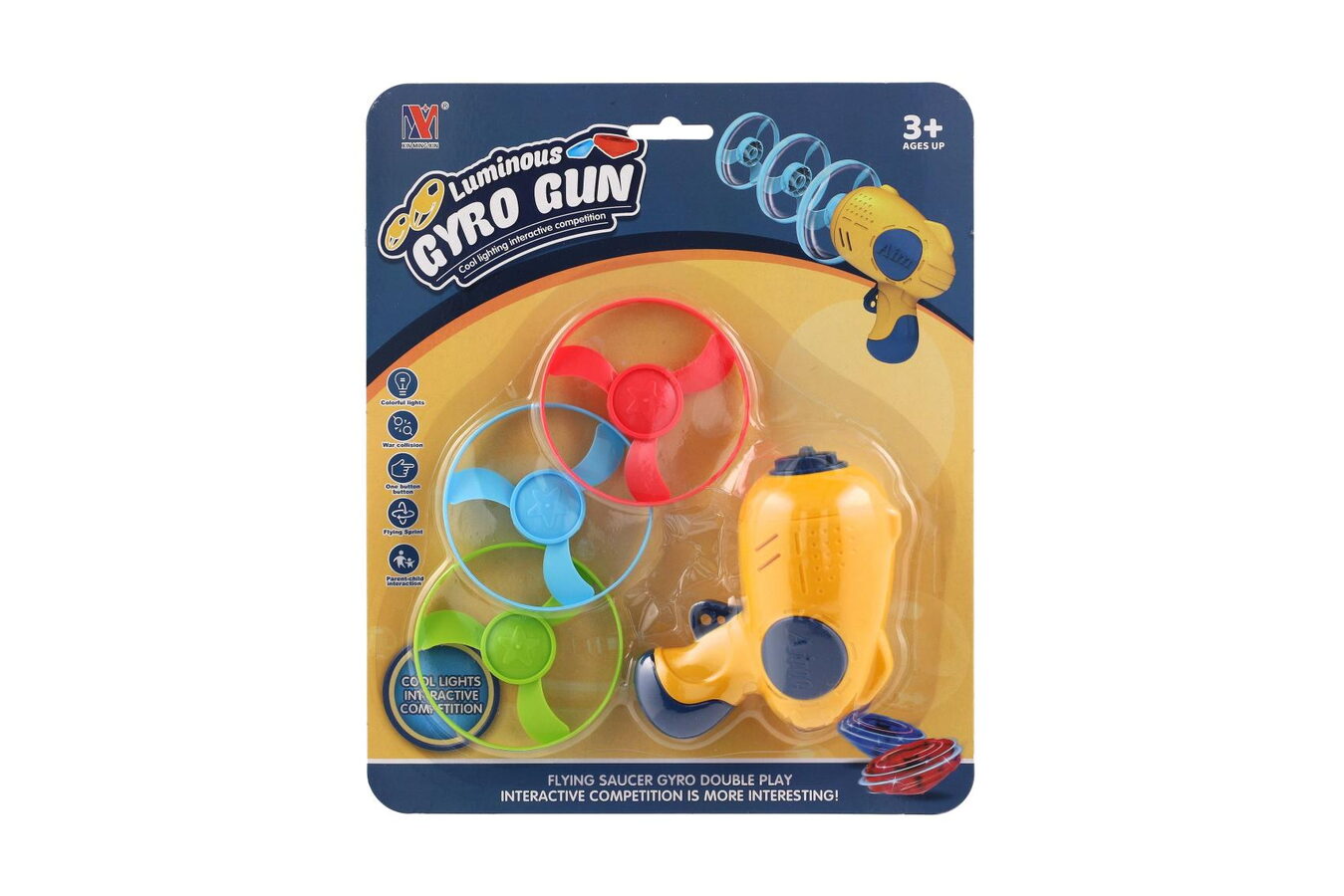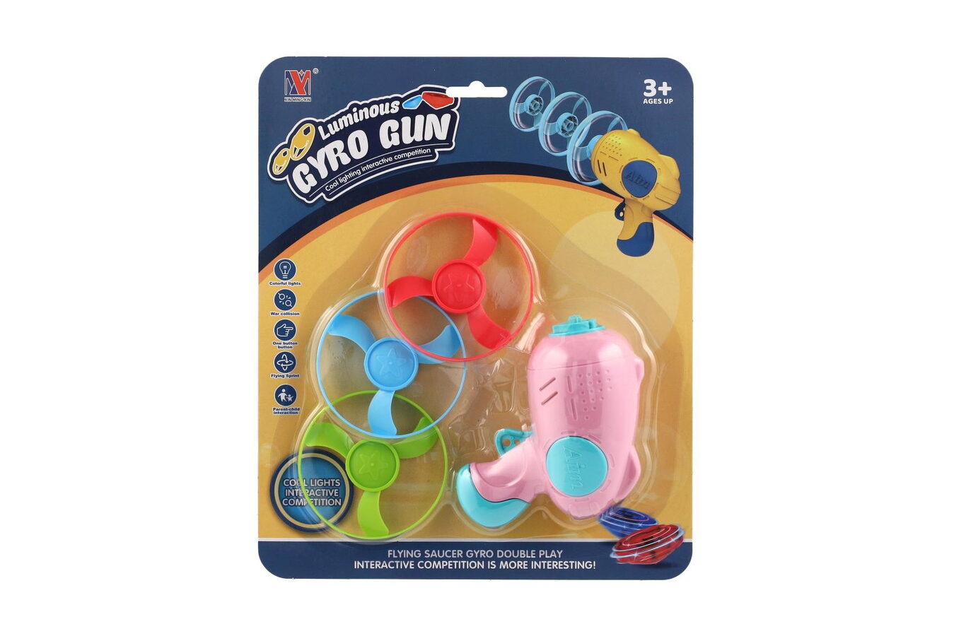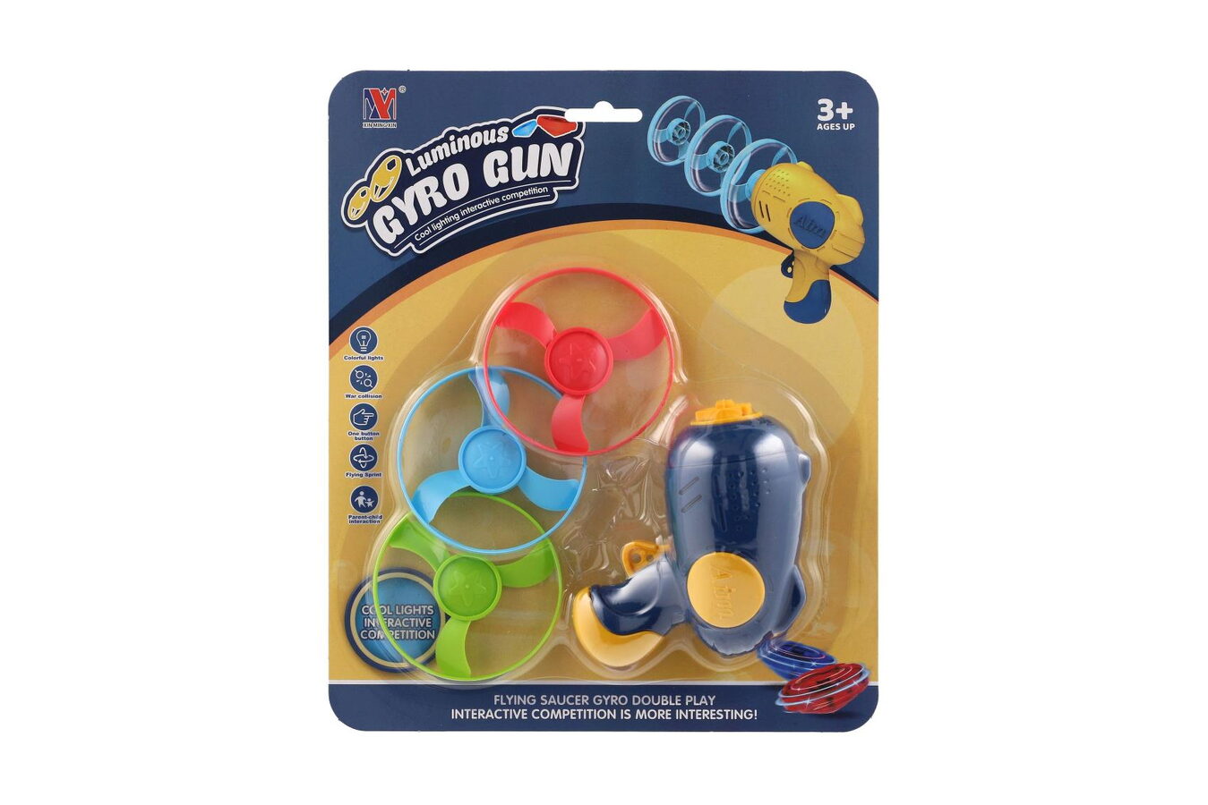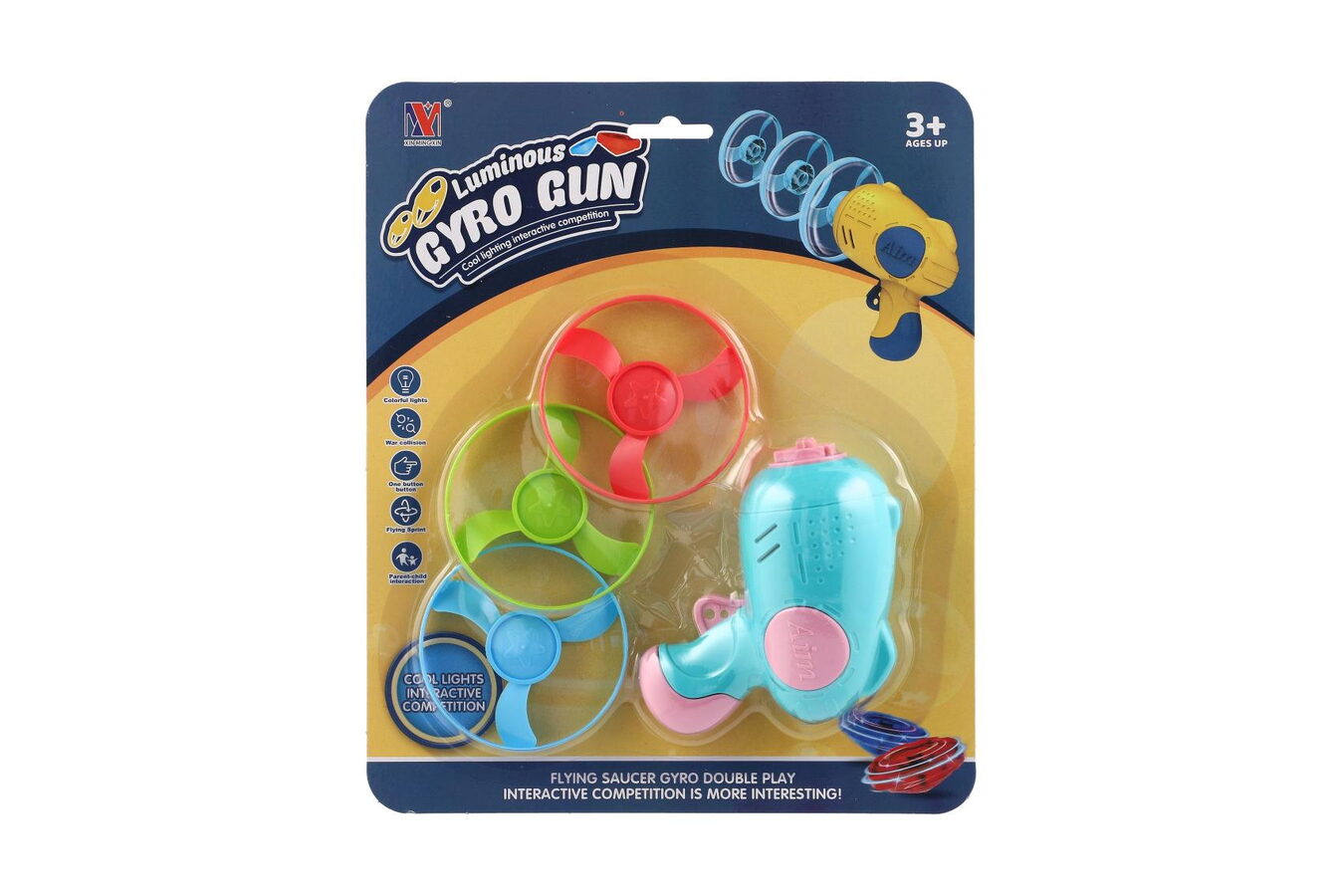 Vystřelovací vrtulka 3ks + startér pistole plast 4 barvy na kartě 21,5x26x6cm