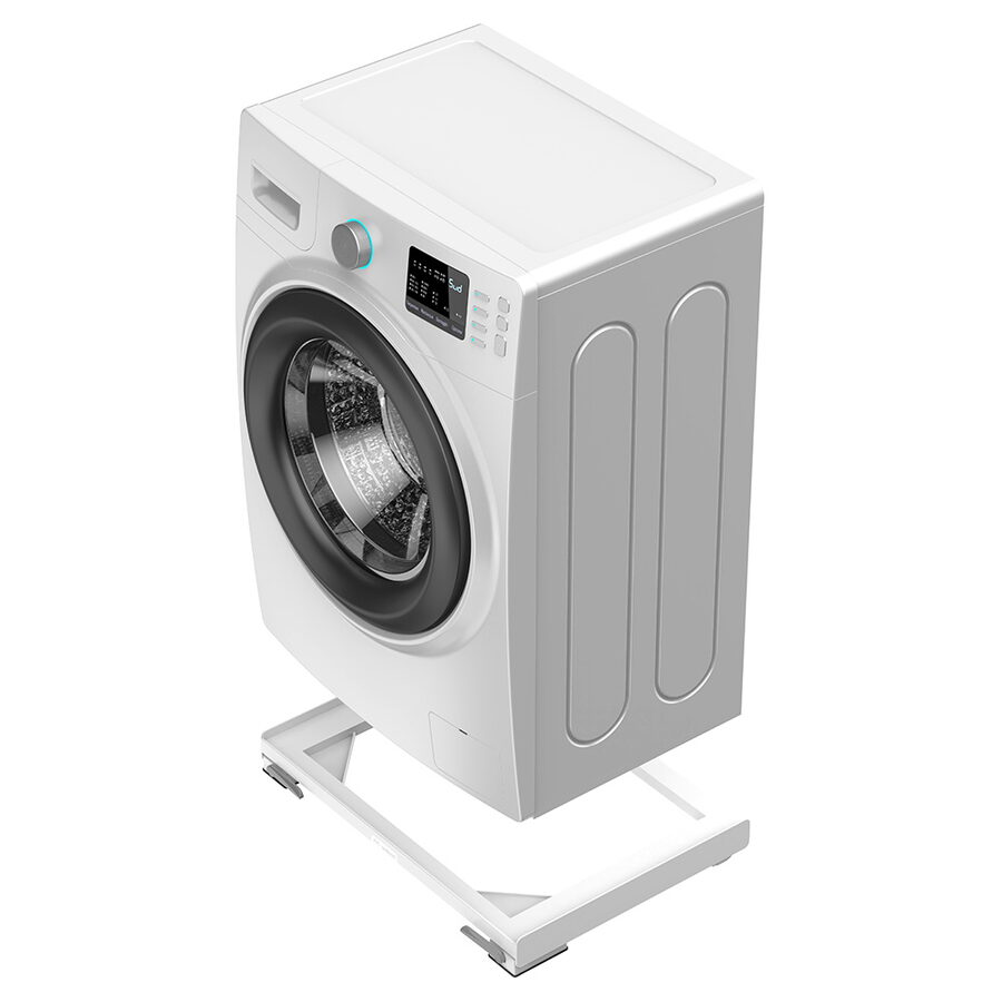 - zaručuje stabilitu i na nerovných podlahách a díky brzdám, které fixují spotřebič, a přemístitelným díky gumovým kolečkům
