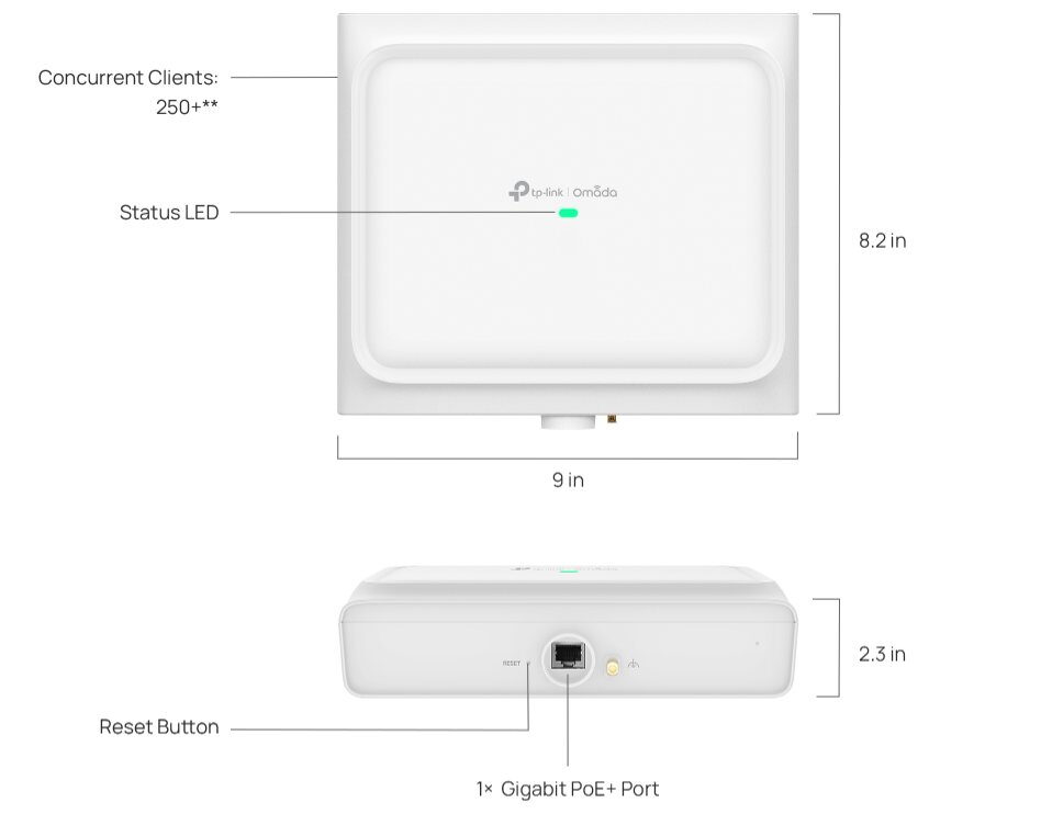 250 klientů současně. S pokročilými funkcemi jako je MU-MIMO, Beamforming a Omada Mesh zajišťuje stabilní připojení i na velkých plochách s náročným provozem.