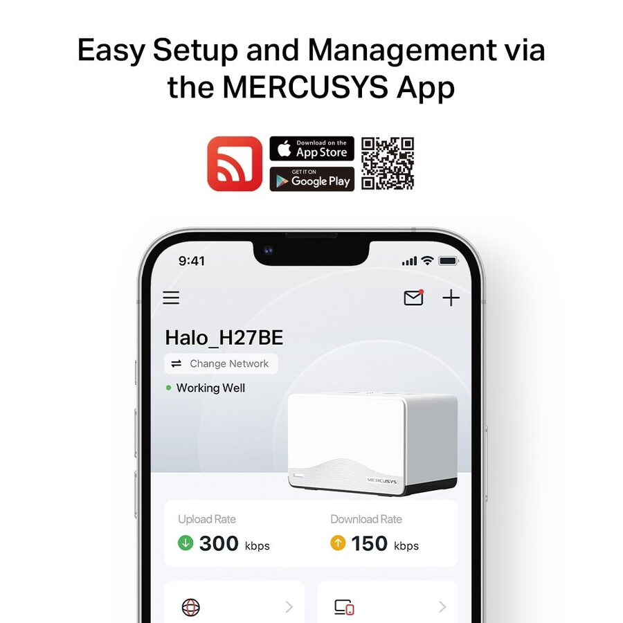 Díky mesh architektuře poskytuje Halo H27BE silný signál v každé místnosti. Všechny jednotky spolupracují jako jedna síť s plynulým roamingem – ideální pro větší domy. 1-pack nabízí řešení pro menší domácnosti s možností rozšíření systému.
